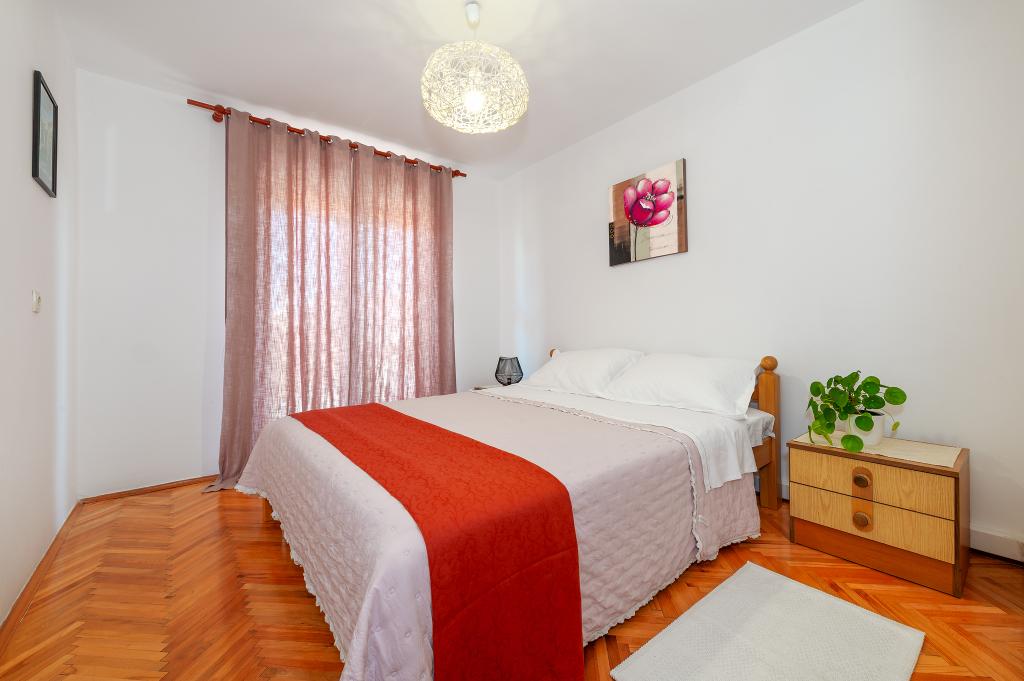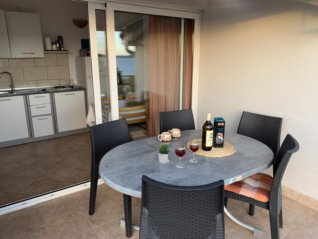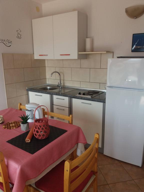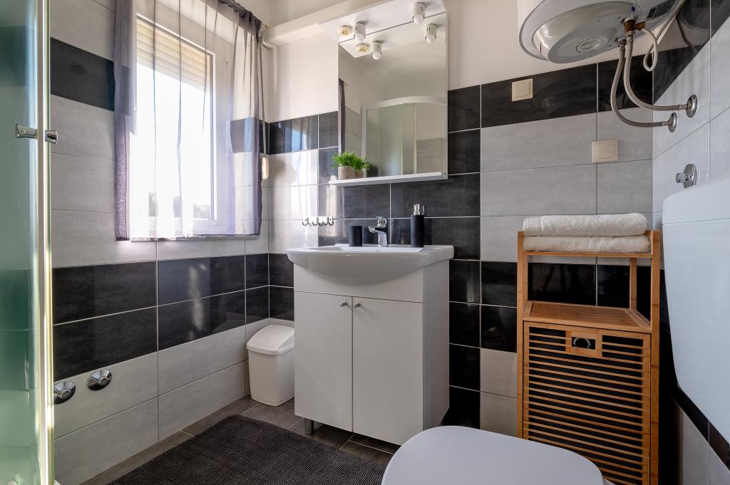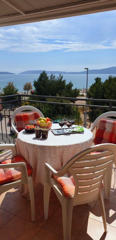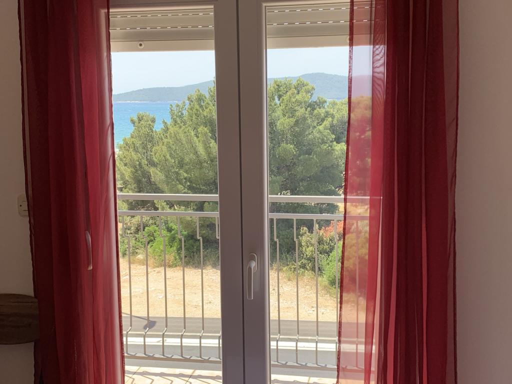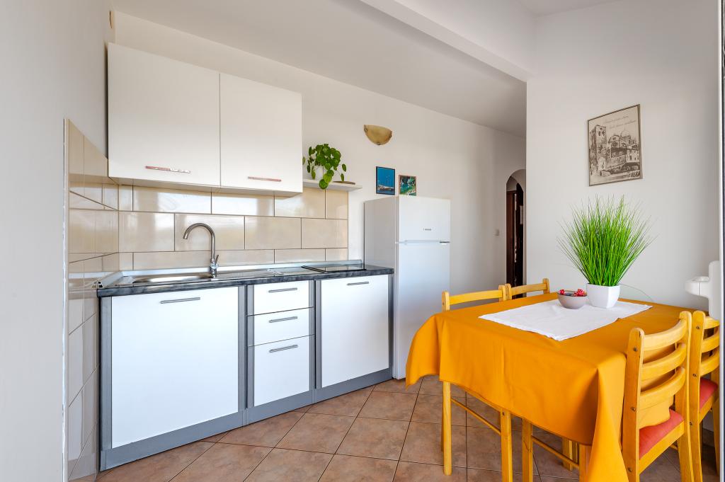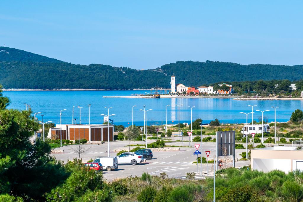 Apartmán v krásné části Brodarica. Výhled z terasy na pláži. velké parkoviště. Gril ve dvoře. vedle grilu je jídelní stůl u všech doprovodných zařízení. Solaris, Sibenik Národní parky Krka a Kornati Oscillační centra, dětské hřiště
