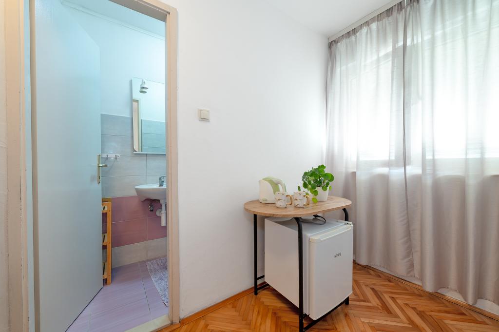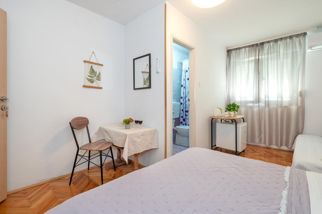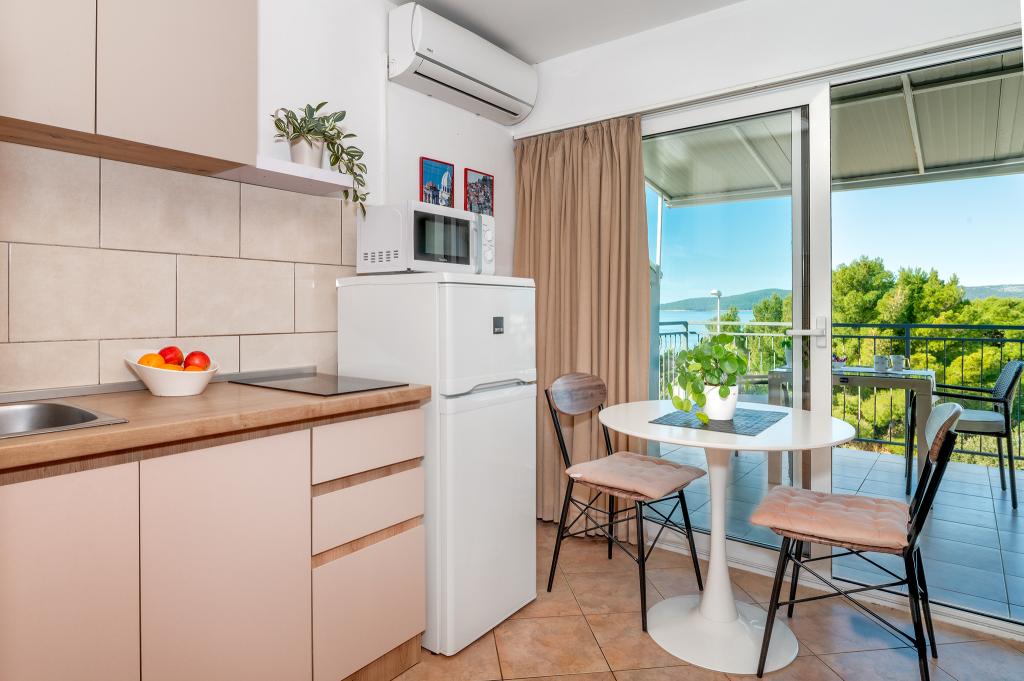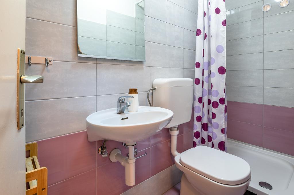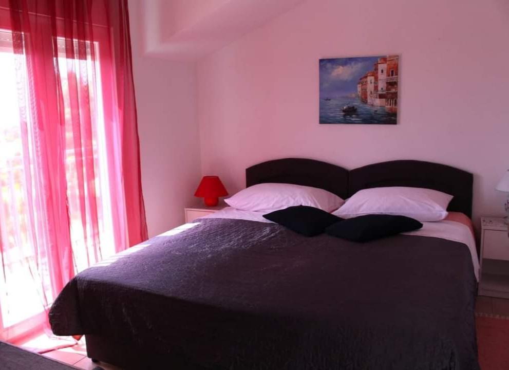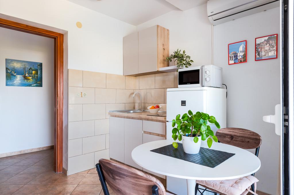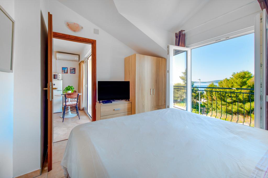 Apartmán v krásné části Brodarica. Výhled z terasy na pláži. velké parkoviště. Gril ve dvoře. vedle grilu je jídelní stůl u všech doprovodných zařízení. Solaris, Sibenik Národní parky Krka a Kornati Oscillační centra, dětské hřiště