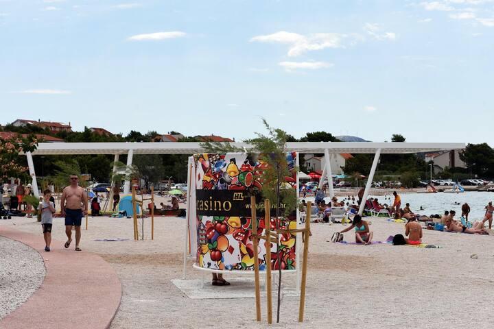 Pokud hledáte pro moderní a dobře vybavené ubytování v Brodarica, s jedinečným výhledem na moře, u nás jste na správném místě! Náš dům se nachází jen 2 minuty chůze od pláže a 5 minut jízdy autem na nejkrásnější hotelový komplex Solaris. Můžete si vybrat: Apartmán 1 pro 3-4 osoby a Apartmán 2 pro 4-5 osob, kompletně zařízená k prázdniny Kuchyň a obývací pokoj, ložnice s manželským lůžkem, koupelna a krásnou terasou s výhledem na moře a okolní ostrovy. V obou apartmánech je vybavená klimatizací. Samozřejmě si můžete pronajmout celé zařízení. V přední části domu je vám středomořském stylu nově navržený gril s pavilonem.