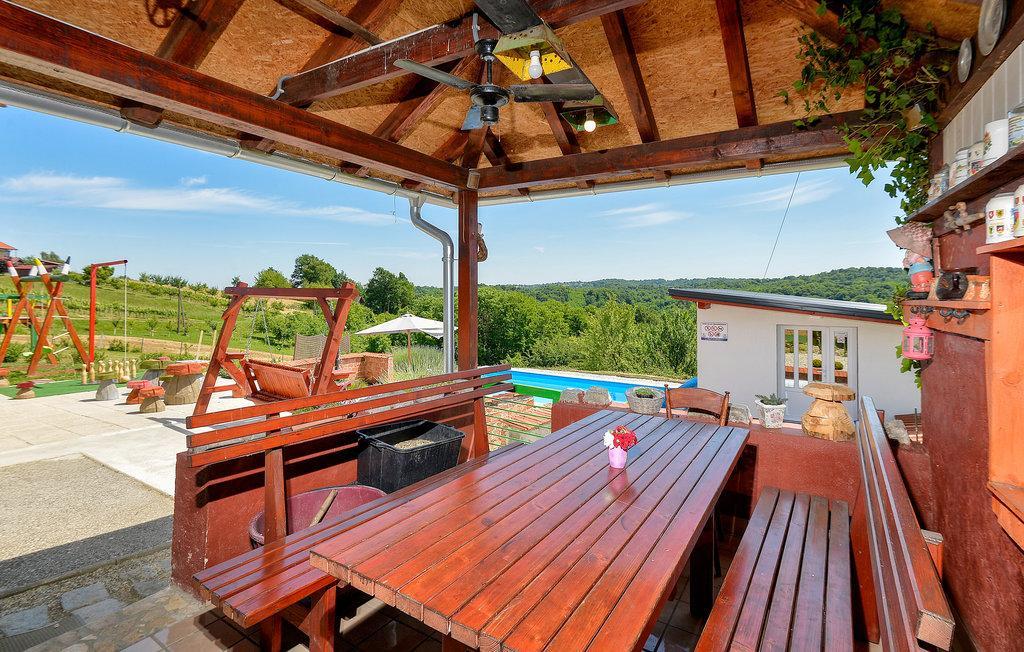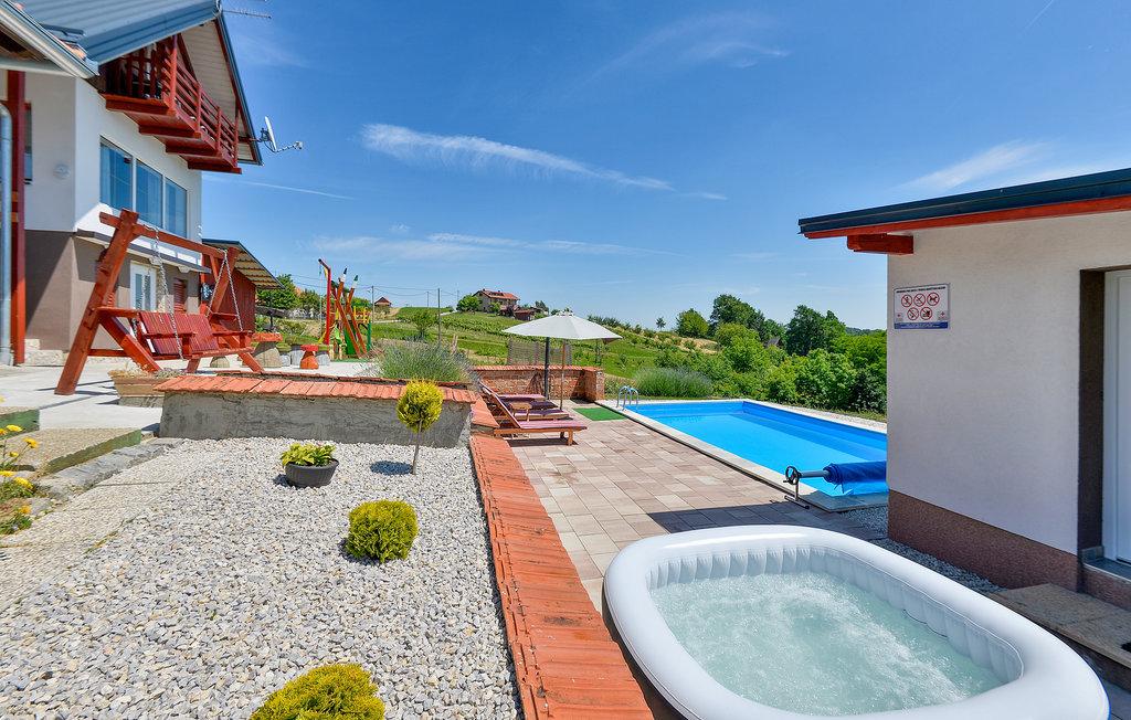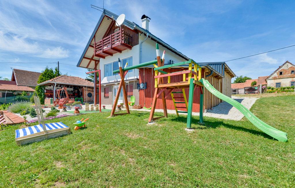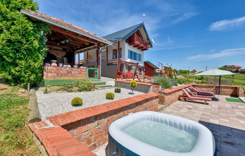Rekreační dům se nachází v kopcovité části Međimurje, oáze odpočinku, klidu, ticha a nedotčené přírody. Krásný výhled do přírody a zeleně, čistý vzduch při užívání bazénu 8x4 metry s opalovací plochou, vířivka, sauna v areálu, dětské hřiště, zipline kabel, závěsná bowlingová dráha, elektronické šipky, rybník s možností sportovního rybolovu na vlastní pozemek, venkovní gril a gril v polouzavřeném areálu. Možnost využití sportovních kol - nedaleká cyklotrasa 20 km