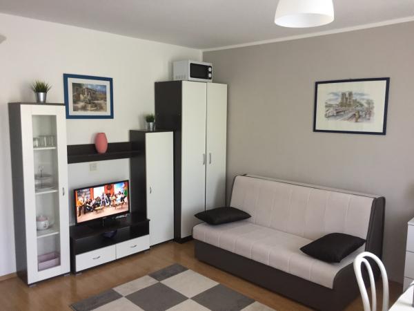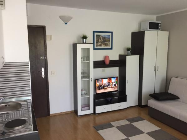Byty Skalinada 1 a 2 jsou plně vybavené a moderní apartmány, o velikosti 30 m2. V apartmánech lze pohodlně ubytovat tři dospělé osoby nebo pár se dvěma malými dětmi. Oba apartmány se skládají z malého obývacího pokoje s rozkládací pohovkou pro jednu osobu nebo maximálně dvěma malými dětmi, obývací pokoj s rozkládacím gaučem - vhodné pro dvě dospělé osoby, kuchyň, která je vybavena lednicí, sporákem, kávovarem, sporákem, které jsou nezbytné nádobí, příbory, jídelna - stůl se 4 židlemi, koupelna obsahuje sprchový kout, pračka, fén, ručníky a terasa, která je vybavena stolem a židlemi. Tyto apartmány mají klimatizaci. Funkce zařízení: jsou k dispozici v budově TV / kabel / internet. Parkovací místo. Zrekonstruována. V ceně: závěrečný úklid. Byt se nachází v centru města, v blízkosti pláže, bary, restaurace, občerstvení, zábava pro děti, sportovišť a dalších zařízení. Těšíme se na Vaši návštěvu!