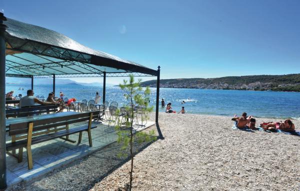 Jedná se o pohodlný apartmán se nachází v prvním patře domu. Plně vybavené a pohodlné, má krásnou terasu s panoramatickým výhledem na moře. Z terasy přijde do koupelny, že dveře nejsou spojeny s bytem. Nedaleko se nachází mnoho pláží, kde si můžete užívat slunce nebo ve stínu borovic, s krásným jasným a čistým mořem. Nezapomeňte navštívit nedaleké Trogir, cennou kulturní památkou a místem, kde se v létě různé zábavné akce.