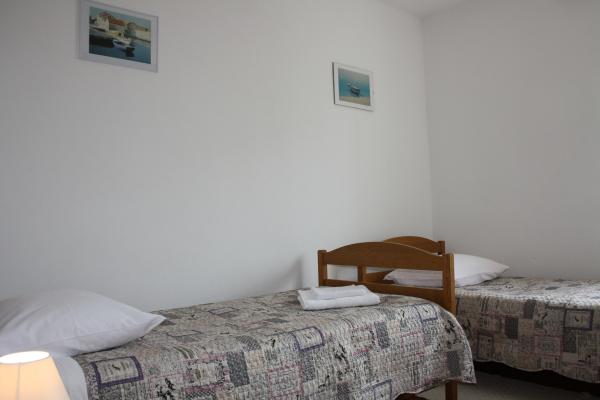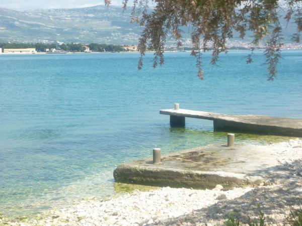 Željka Apartmány se nachází pouhých 30 metrů od moře, na ostrově Čiovo, v oblasti Mastrinka. Skládá se ze dvou samostatných apartmánů, jeden apartmán se nachází v přízemí, zatímco druhý byt v prvním patře. Byt 1 je v přízemí a má rozlohu 66 m2 a balkon o 15 m2. Skládá se ze dvou ložnic, kuchyně, obývací pokoj s rozkládací pohovkou pro 1 osobu a koupelnu. V jedné ložnici je manželská postel, zatímco druhá dvěma samostatnými lůžky. To se může ubytovat celkem 5 osob. Byt 2 se nachází v prvním patře a má rozlohu 80 m2 a balkonem s výhledem na moře 15 m2. Skládá se ze dvou ložnic, kuchyně, obývací pokoj s rozkládací pohovkou pro 2 osoby a koupelna s pračkou. Je vhodný pro 6 osob. Oba jsou vybaveny klimatizací a Wi-Fi připojením na internet a hosté apartmány mají využití venkovního grilu a parkování. Na 200 metrů od hotelu je velký supermarket, zatímco město Trogir se nachází 3 km.