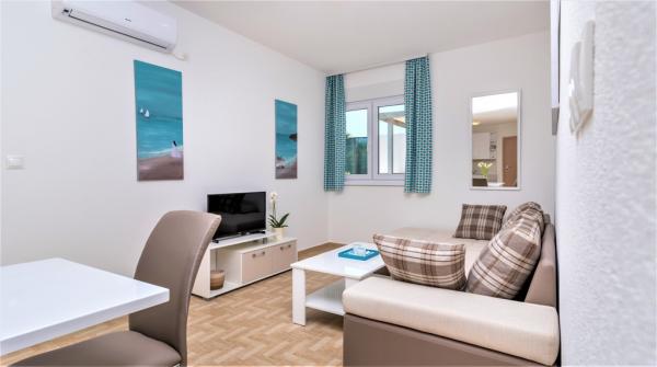Apartment Adria Zara se nachází v krásné novostavbě z roku 2017. Adria Zara má 2 místnosti, obývací pokoj