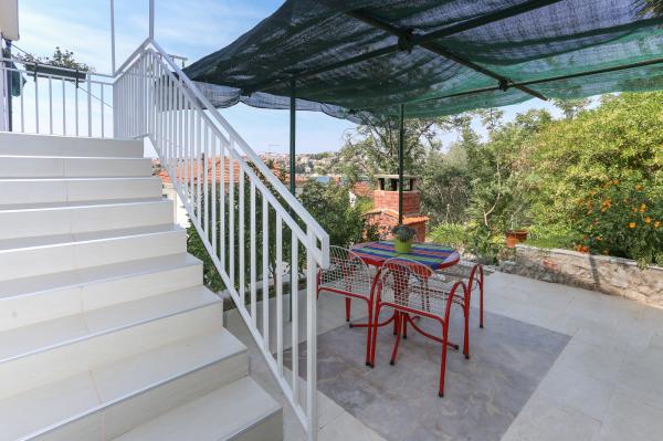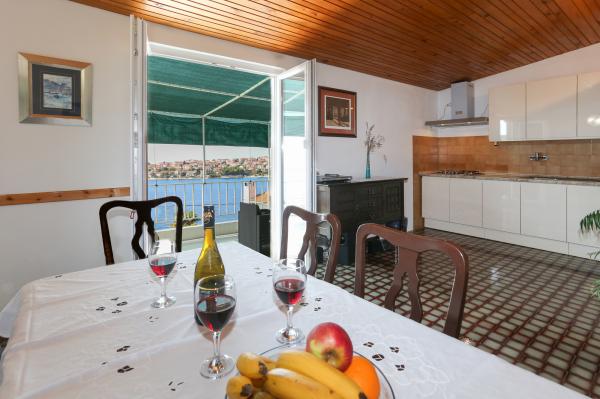 Apartmán je nově zařízený a plně vybavený a je jediným k pronájmu v objektu. Nachází se v 1. patře s terasou o rozloze 18 m2, s krásným výhledem na ostrov Šolta a moře, které je vzdálené 30 m. Apartmán se nachází v klidném a zeleném prostředí. Není zde žádný provoz vozidel ani chodců. Prostředí je obýváno ptáky a jejich zpěv je slyšet od rána do večera. Pláž je od apartmánu vzdálena 150 metrů nebo asi 3 minuty chůze. Pláže jsou rozmanité, od skalnatých, betonových, oblázkových až po písčité. Objekt je vzdálen 50 km od Národního parku Krka a Šibeniku a 30 km od Splitu. Získali jsme status MÍSTNÍHO HOSTITELE.