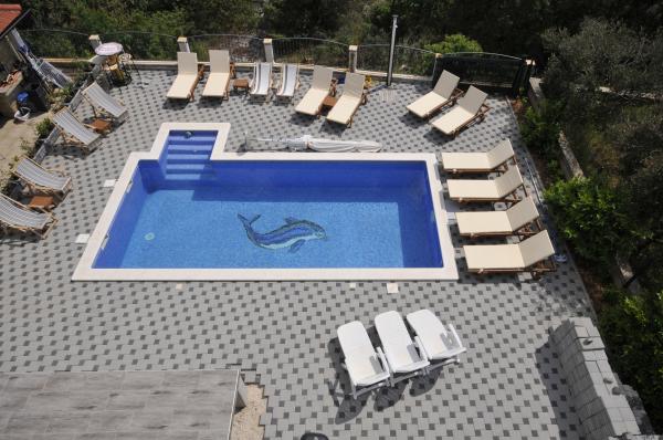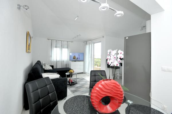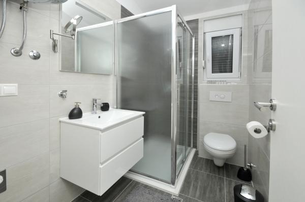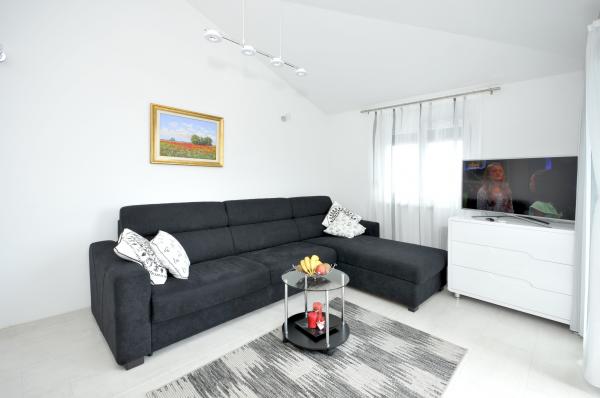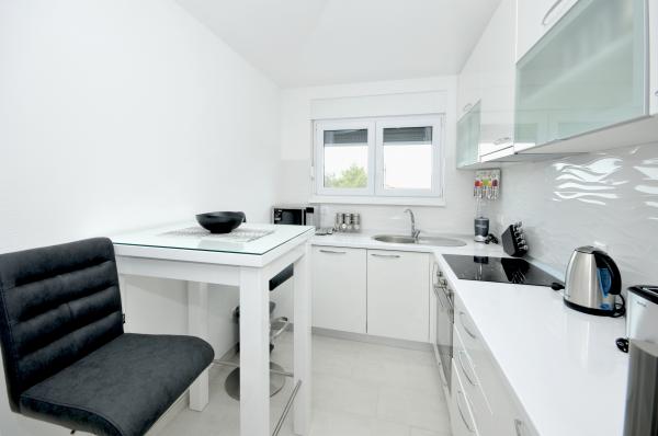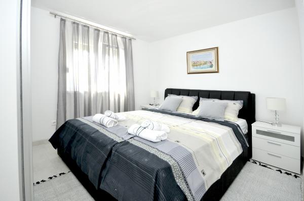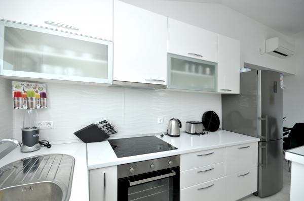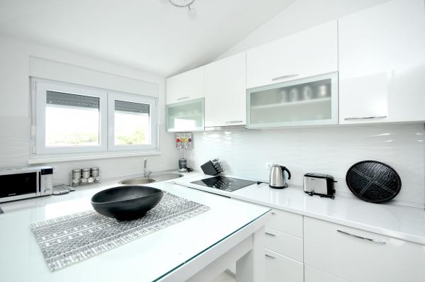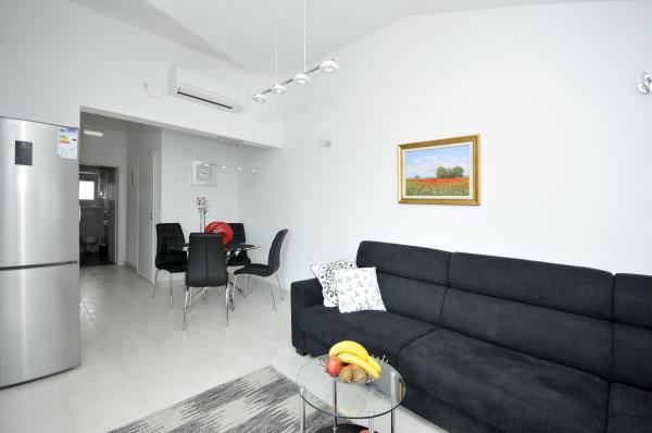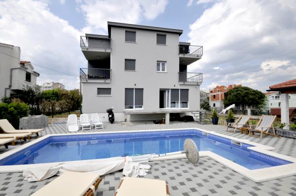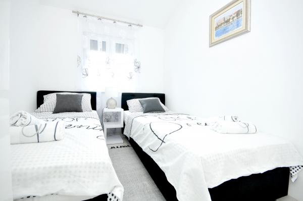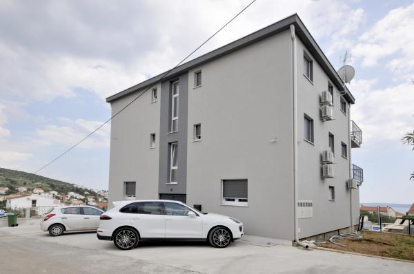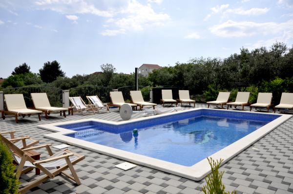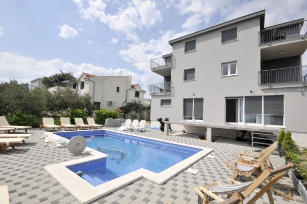 Nový, moderně zařízený apartmán s 2 ložnicemi a bazénem na jižní straně ostrova Čiovo. s krásným výhledem na okolní ostrovy: Brač, Hvar a Šolta. Disponuje veškerou občanskou vybaveností, aby vaše dovolená byla příjemná a měla pocit, jako je ve vašem domě. Nachází se v klidné ulici, pouhých 350 metrů od nejkrásnějších oblázkových pláží na ostrově. V blízkosti obchodů a restaurací s nejkvalitnějšími místními specialitami. 4 km od starého města Trogir perly dědictví UNESCO. Nový, nepoužitý byt o rozloze 50m2, maximálně funkčně a esteticky zdobený. Vybaveny veškerým komfortem pro pohodlný pobyt. Soukromé parkoviště, využití bazénu a grilování jsou pro naše hosty k dispozici. 300 m od pláže, potápěčské centrum Trogir a aquapark.