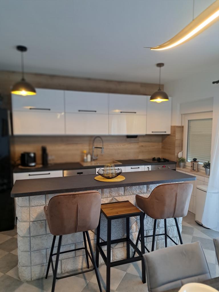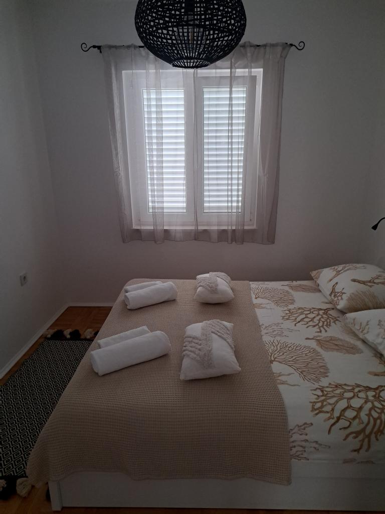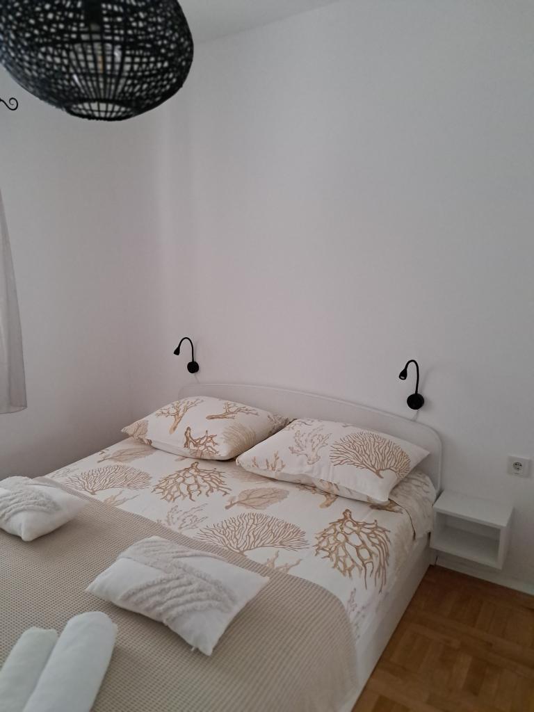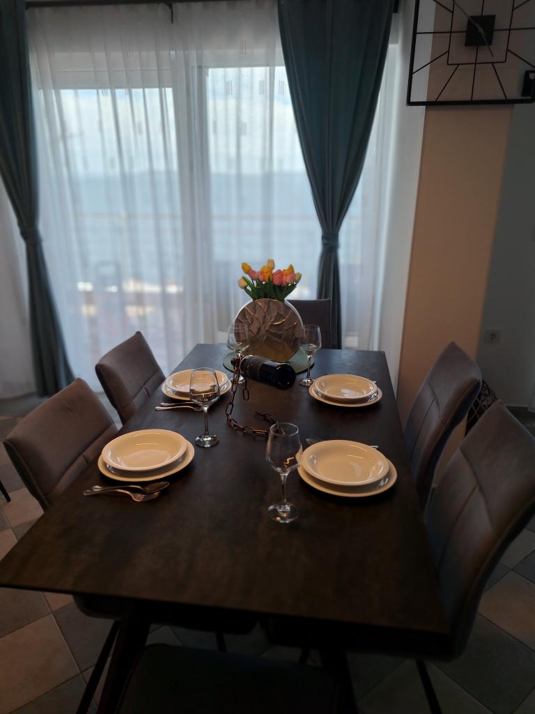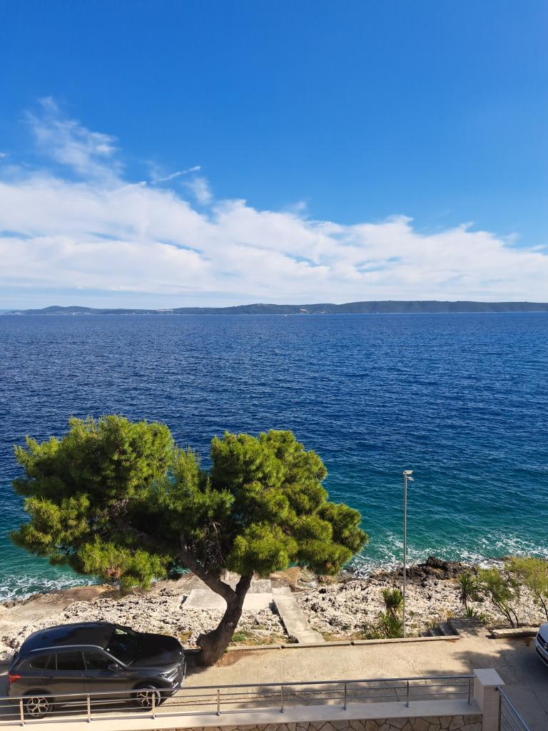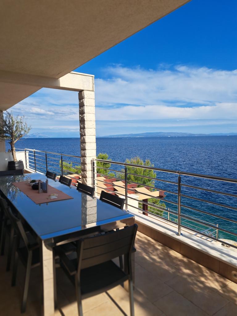 Moderně vybavený apartmán v domě, první řada u moře, sestává ze dvou pokojů, obývacího pokoje, kuchyně, koupelny, WC, velké terasy s krásným výhledem. Hlídané parkoviště, venkovní gril. Byt je klimatizovaný, vybaven myčkou, prádelnou, Wi-Fi...