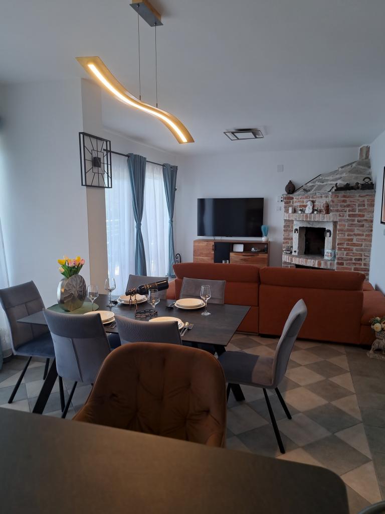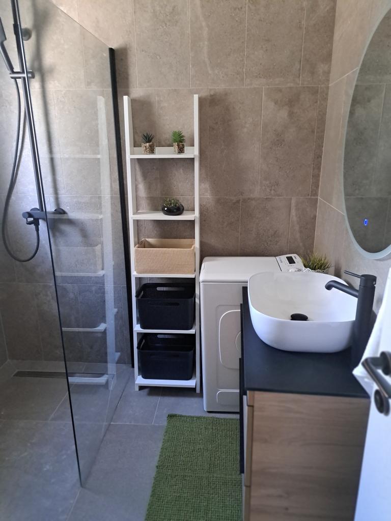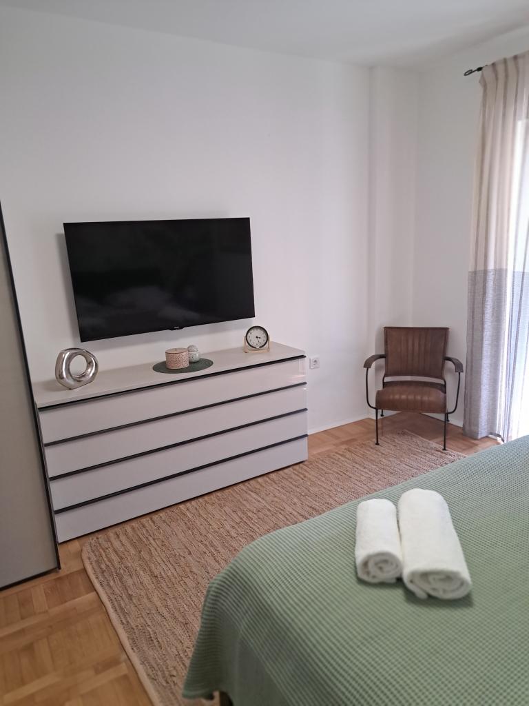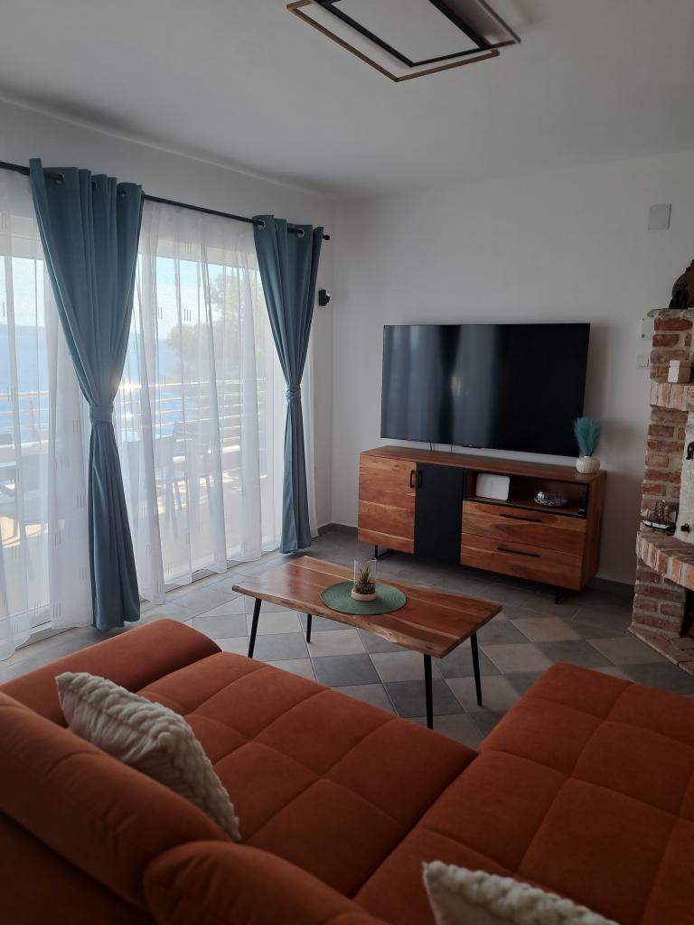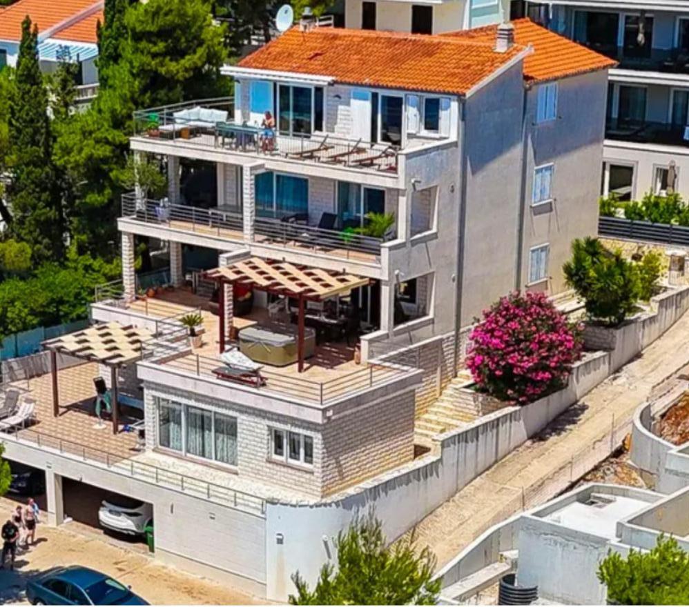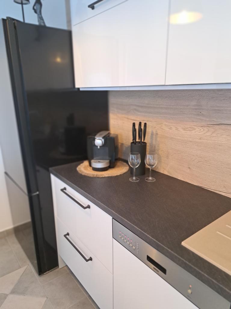 Moderně vybavený apartmán v domě, první řada u moře, sestává ze dvou pokojů, obývacího pokoje, kuchyně, koupelny, WC, velké terasy s krásným výhledem. Hlídané parkoviště, venkovní gril. Byt je klimatizovaný, vybaven myčkou, prádelnou, Wi-Fi...