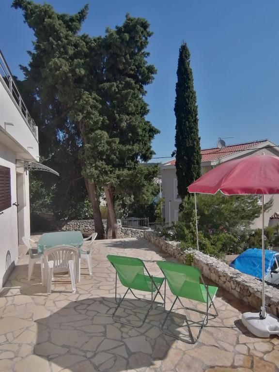 Opravdu pěkný byt zejména pro rodinu. Pikantní, se dvěma krásnými terasami, jedna s výhledem na moře a druhá do zahrady. Klidné okolí, právě včas na odpočinek. Velmi blízko pláže a opravdu pěkný majitel. Velmi čistá koupelna a druhá toaleta. Čistá a dobře vybavená kuchyň.