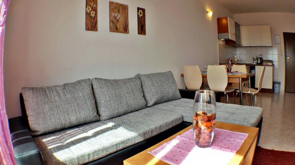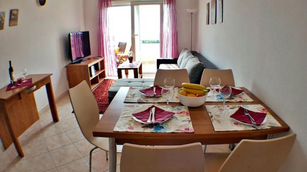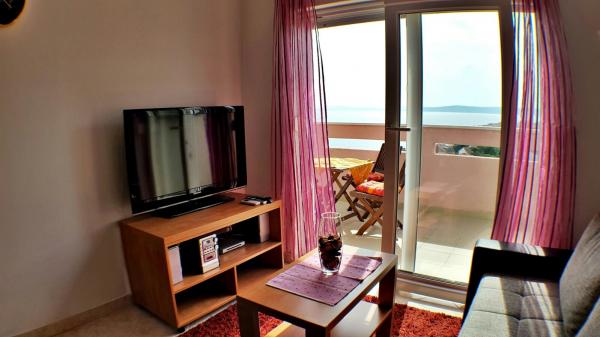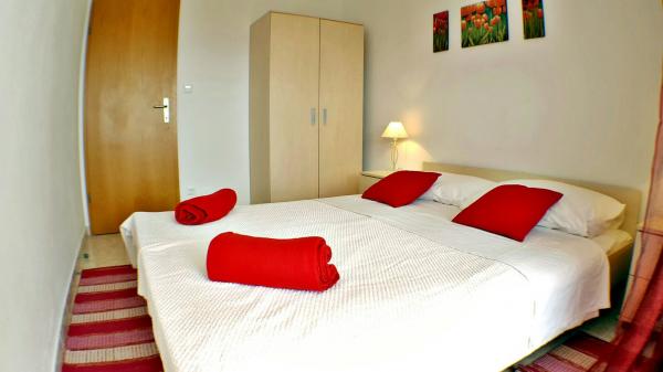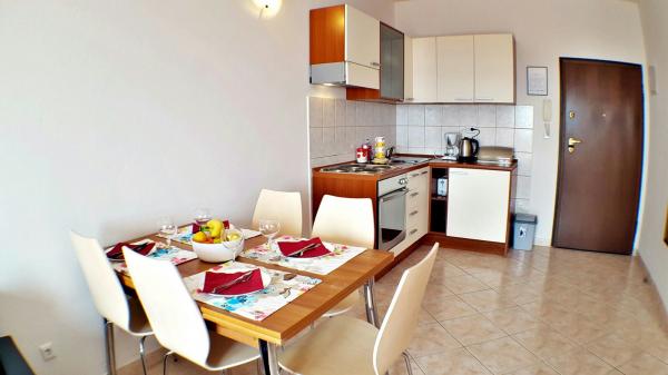 Byt se nachází na jižní straně ostrova Čiovo v klidné Mavarcica. Je umístěn v nejvyšším patře malého budovy. Byt se nachází pouhých 5 minut chůze od pláže. Na rozdíl se skládá z ložnice s východem na terasu, kuchyň, jídelna, obývací pokoj a koupelna s dalším WC. Prostorná terasa nabízí úchvatný výhled na moře a okolní ostrovy. Z terasy je kryta markýzou. V bytě je klimatizované. K dispozici Wi-Fi a SAT / TV programů. V obývacím pokoji je rozkládací pohovka, která okamžitě promění přistýlky. V přízemí se nachází bazén, který je zdarma k použití a restaurace. Uvnitř budovy je k dispozici a parkování je veřejná. 700 metrů od apartmánů jsou vybaveny veškerým zařízením (trh, pošta, trh). V bytě je 3. 6 km od centra města. V blízkosti pláže se nachází potápěčské centrum a tenisové kurty jsou jen 1. 5 km.
