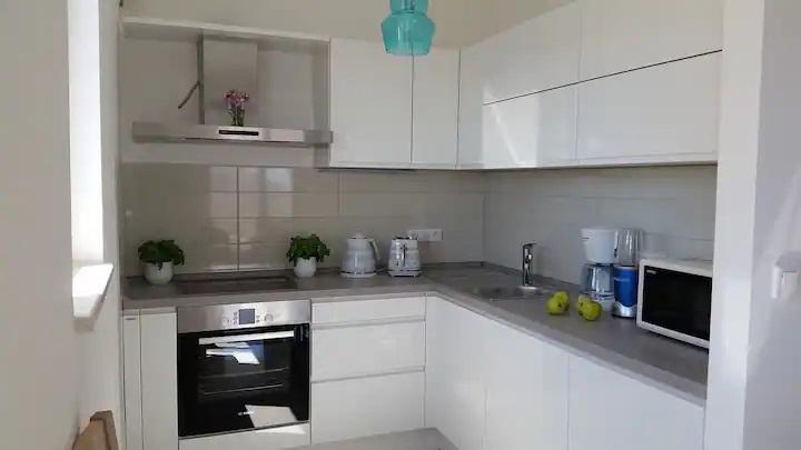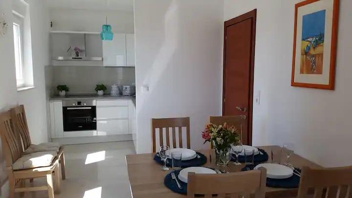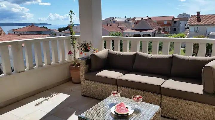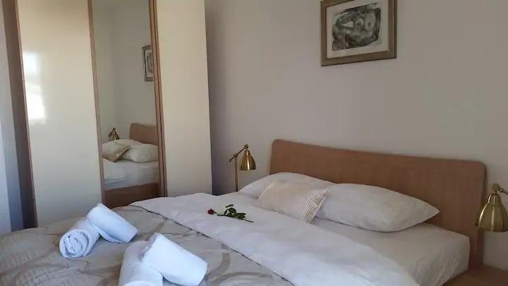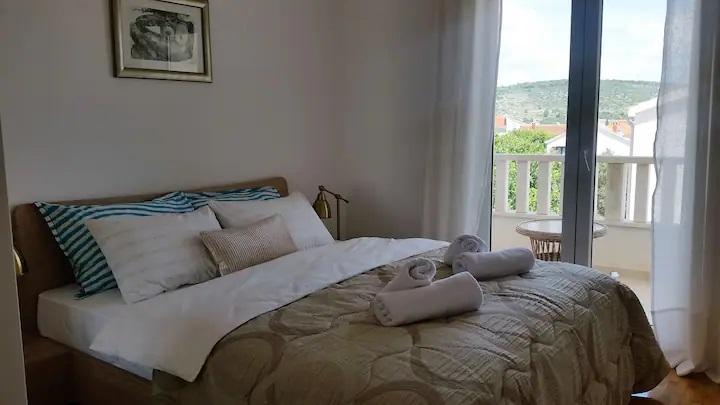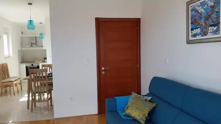 Nový, moderní, 80 m2 pohodlný byt s výhledem na otevřené moře, který se nachází na jižní straně ostrova Čiovo. Nachází se v klidné ulici bez provozu, jen 250 m od nejkrásnějších oblázkových pláží Čiova v blízkosti obchodů a 2 restaurací s místními specialitami. Krátká procházka pouhých 400 m vede do centra obce, odkud je dostupná veřejná doprava do krásného města Trogir pod ochranou UNESCO, které je od nás vzdálené pouhé 4 km. Byt je zalitý světlem, což mu umožňuje orientaci na tři světové strany: jihovýchod a západ. Skládá se z prostorného obývacího pokoje, dvou velkých teras, jídelny s kuchyní, dvou ložnic, koupelny s masážní vanou a WC. Našim hostům je k dispozici satelitní TV, Wi-Fi a klimatizace a dvě parkovací místa. Byt je plně vybaven podle nejvyšších standardů, aby se naši hosté cítili co nejpohodlněji.