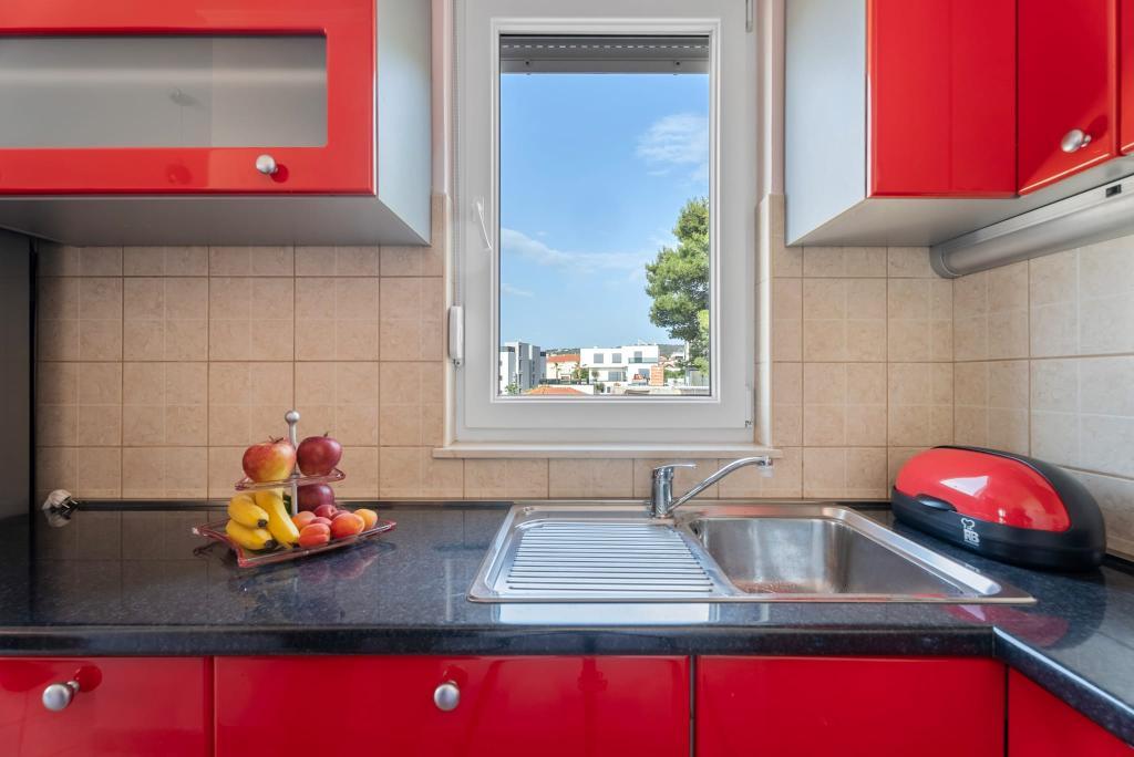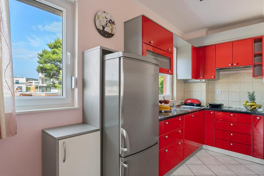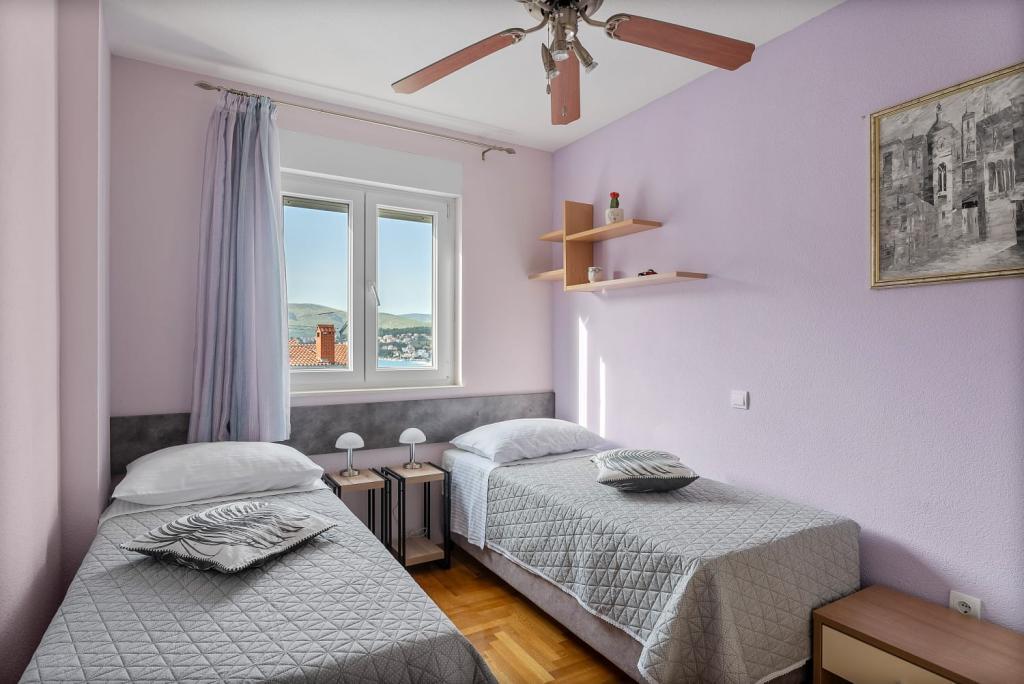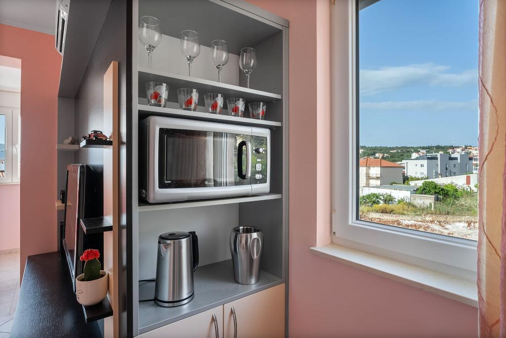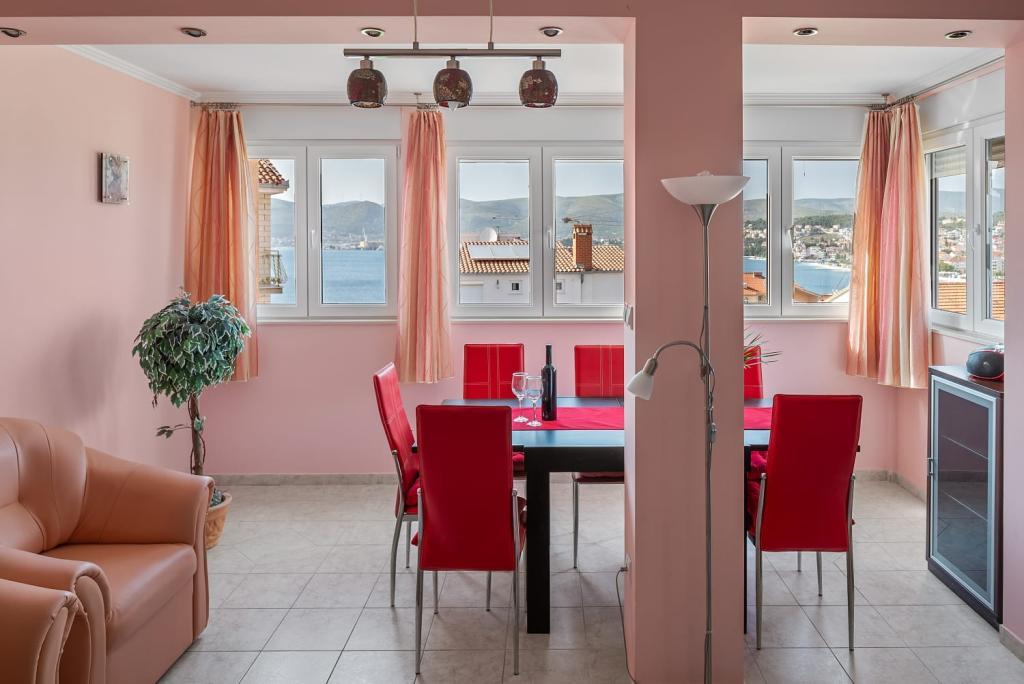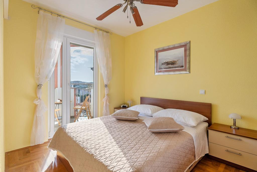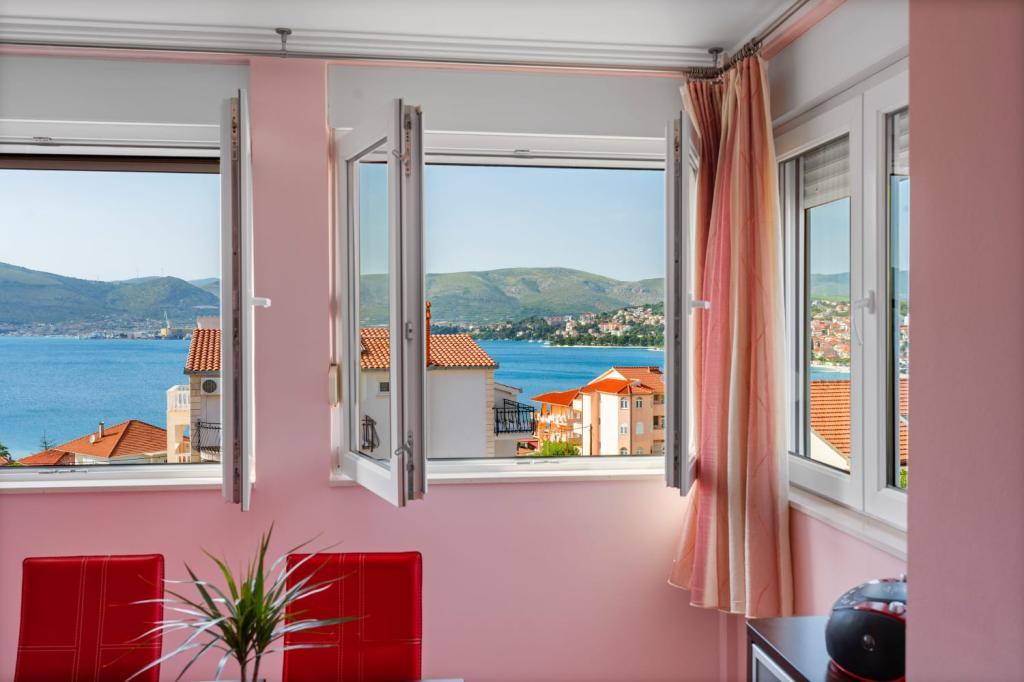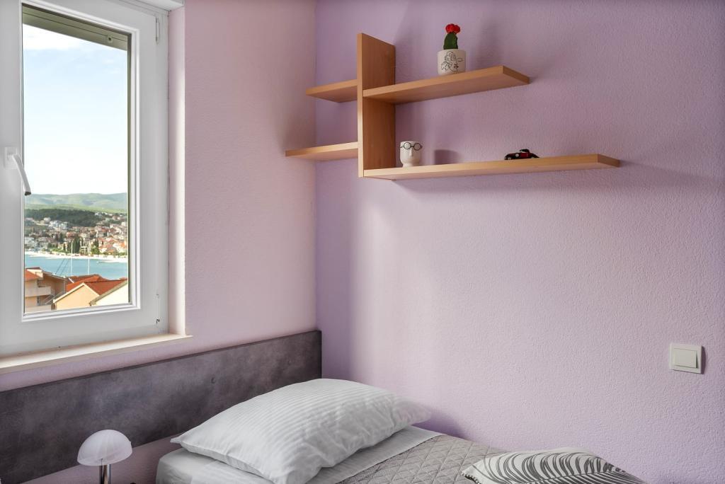 Apartmán Letní vzpomínky je prostorný a moderně zařízený apartmán ve 2. patře budovy s výhledem na moře, 15 minut jízdy autem od mezinárodního letiště. Apartmán se nachází v blízkosti krásných oblázkových pláží, které se táhnou až do starého města Trogiru. Nejbližší pláž je vzdálená 4 minuty chůze. Apartmán má balkon, kde si můžete vychutnat ranní kávu a výhled na moře. Má 2 ložnice, z nichž jedna má možnost spojit 2 postele do jedné manželské postele. V bytě jsou 2 klimatizace. Pro vaše vozidlo máte zajištěné parkování před budovou. V blízkosti se nachází: supermarket, kavárny a restaurace na pláži.