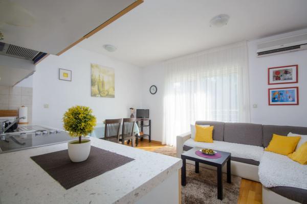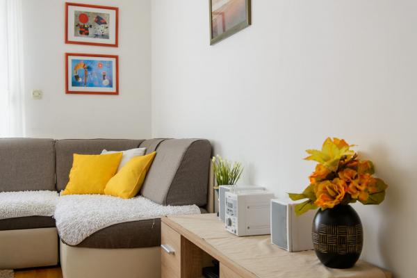 Jedna ložnice, pohodlný byt ve 2. patře v Trogiru, v blízkosti Okrug Gornji. Vhodné pro pár nebo dvě dospělé osoby a jedním nebo dvěma malými dětmi. Pět minut chůze od nedaleké písečné pláže s bary a restauracemi, 10 minut chůze od centra města. Byt Sunflower se nachází mezi Trogir a Okrug Gornji, v domě s byty, 100m od pláže. V bytě je vysoce kvalitní a velmi pohodlné. To má jednu ložnici s manželskou postelí, plně vybavená koupelna (s pračkou), kuchyň (mikrovlnná trouba, kávovar, ale žádná myčka nádobí) a obývací pokoj s přídavným pohovkou. V obývacím pokoji vyjde na východní orientace balkon s částečným výhledem na moře. Mohou se zde ubytovat 3 dospělí nebo 2 dospělí a 2 děti. Byt je klimatizován, má bezplatné Wi-Fi a parkování.