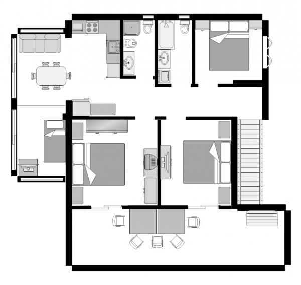Apartmán pro šest osob se dvěma přistýlkami (94 m2)