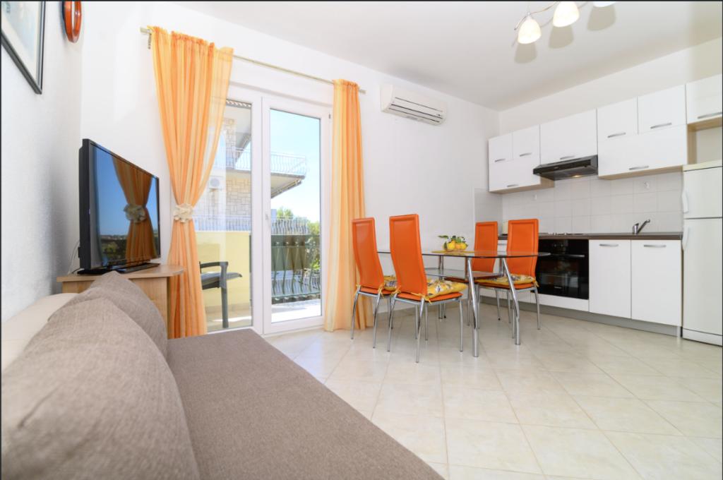 Apartmány Vice se nacházejí na ostrově Čiovo, v první řadě u moře - doslova pár kroků od křišťálově čistého Jaderského moře. Jsou v bezprostřední blízkosti historického města Trogir, které je s pevninou spojeno mostem a je zapsáno na seznamu světového dědictví UNESCO. Trogir je vzdálen jen pár minut jízdy autem, což z této lokality činí ideální místo pro každého, kdo si chce užít jak klid ostrovní atmosféry, tak bohatý program blízkého města. Turismu se věnujeme již více než 15 let a našim hostům nabízíme pohodlné a plně vybavené ubytování pro bezstarostnou a odpočinkovou dovolenou. Objekt má soukromé parkoviště, klimatizaci, rychlý optický internet a prostornou terasu s krásným výhledem na moře. K dispozici je také venkovní gril, ideální pro užívání si autentických dalmatských večerů. Každý apartmán je vybaven chytrou televizí, moderní kuchyní s potřebnými kuchyňskými spotřebiči, včetně kávovaru, pračky a všech základních potřeb pro příjemný a praktický pobyt.