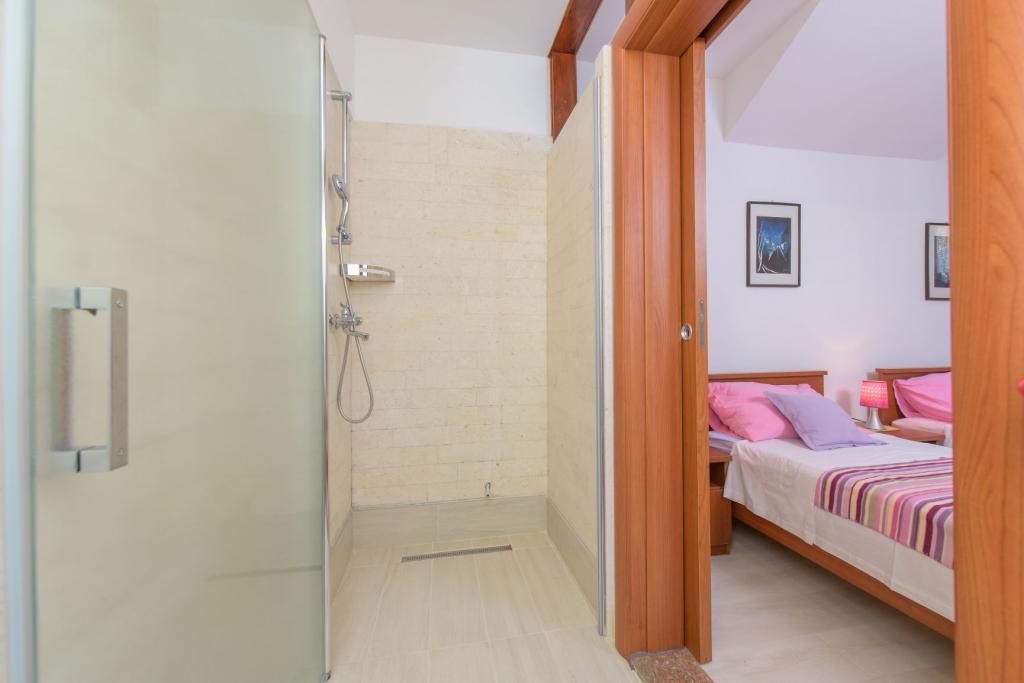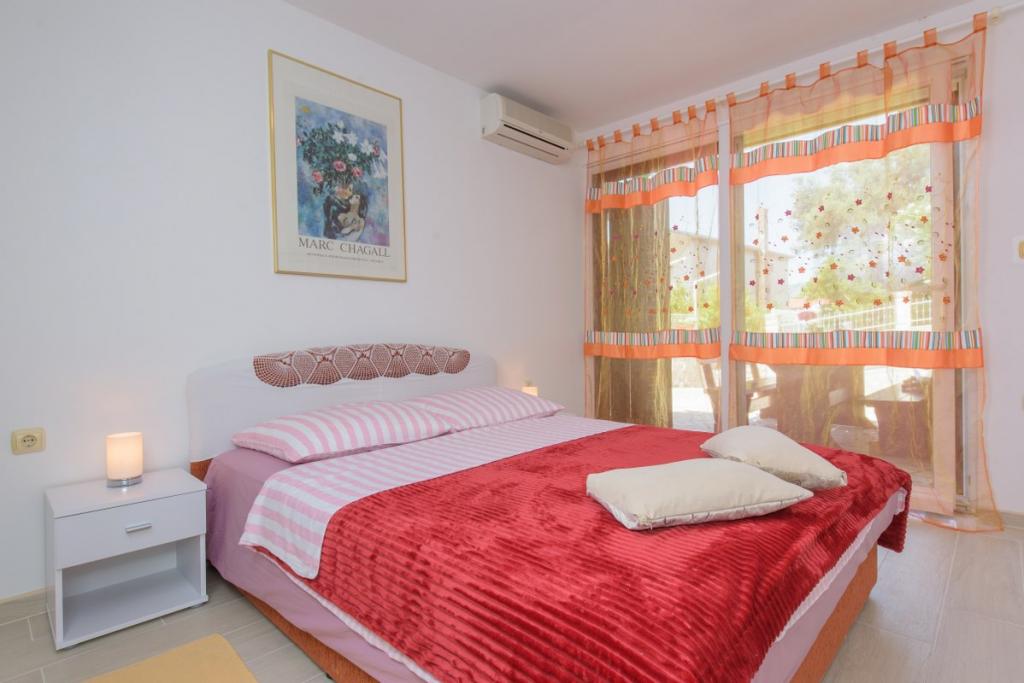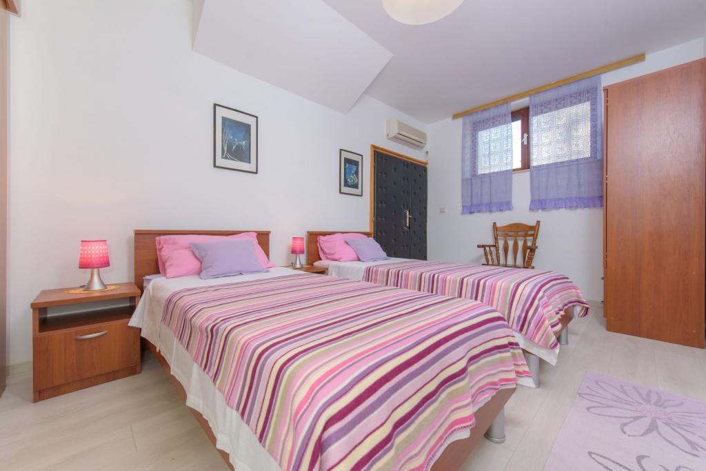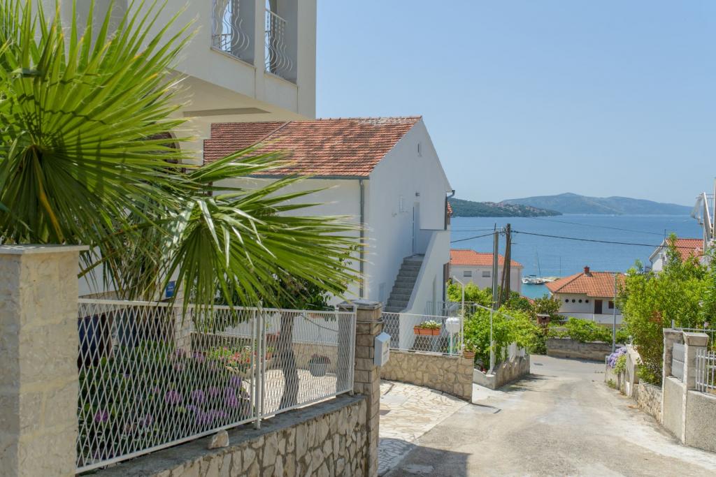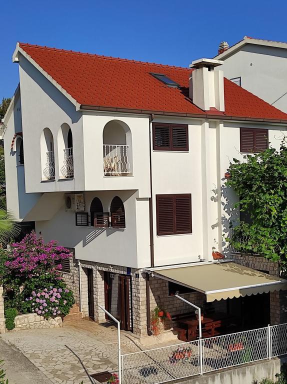 Dům s bytem v přízemí a příjezdové zpevněné silniční délky 50m. s pouhými dvěma domy se nachází v klidné oblasti. Pohodlný apartmán se 2 ložnicemi a 2 koupelny s WC 2, obývací pokoj a samostatná kuchyň a terasu a parkování ve dvoře. Všechny pokoje jsou klimatizované. K dispozici a zahradní sprcha. Ideální pro hosty, kteří chtějí klid a pohodu ve stínu zahradní terase s žádnými dalšími hosty. , Majitel bydlí v domě se samostatným vchodem a jsou k dispozici pro pomoc. V areálu se nachází 10 minut od pláže, kde četné zařízení (aquva parku, vodní sporty, potápění, půjčovna, motorů, automobilů a lodí), stále existují klidnější pláž. Odjezd do Trogiru každých 30 minut lodí. Podél plážové promenády, asi 1500 metrů. Pořádáme četné výlety na okolní ostrovy a Národního parku Krka. Split je jen 30 km kromě silniční spojení je k dispozici také prostřednictvím lodních linek Poblíž letiště pro ty, kteří nemají auto. Poznámka: Apartmán je vybaven moskytiérou