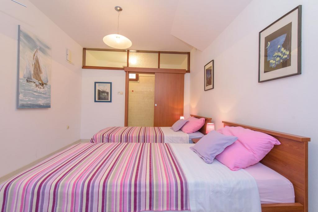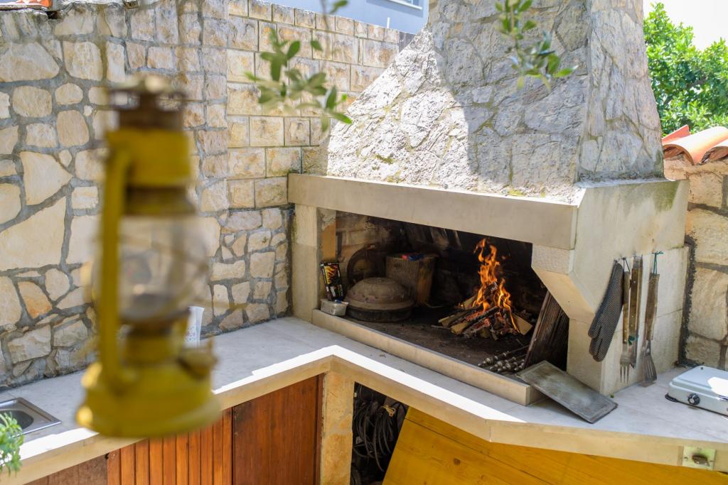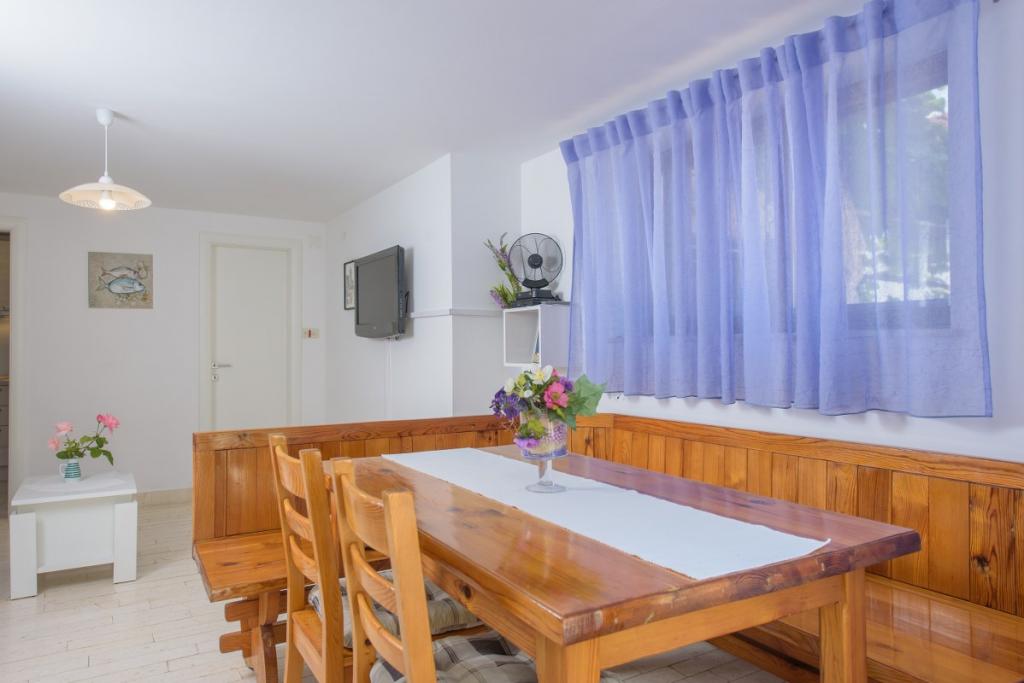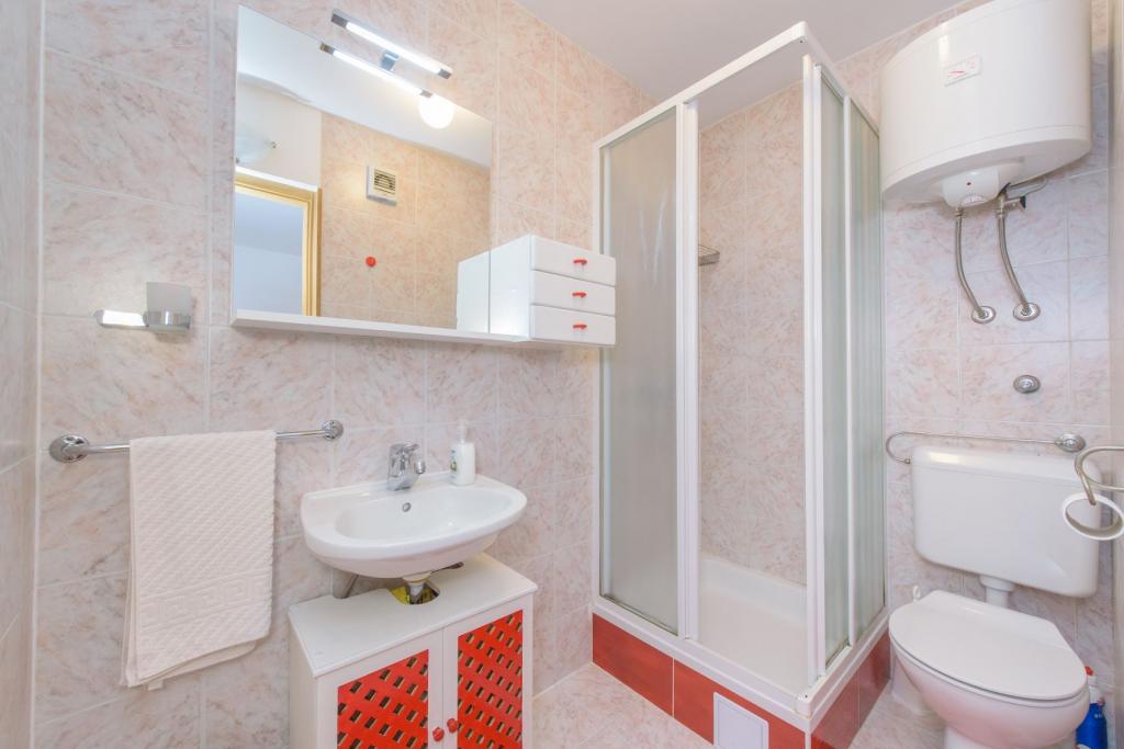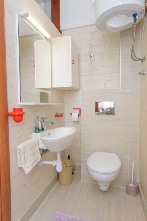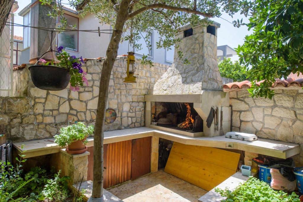 Dům s bytem v přízemí a příjezdové zpevněné silniční délky 50m. s pouhými dvěma domy se nachází v klidné oblasti. Pohodlný apartmán se 2 ložnicemi a 2 koupelny s WC 2, obývací pokoj a samostatná kuchyň a terasu a parkování ve dvoře. Všechny pokoje jsou klimatizované. K dispozici a zahradní sprcha. Ideální pro hosty, kteří chtějí klid a pohodu ve stínu zahradní terase s žádnými dalšími hosty. , Majitel bydlí v domě se samostatným vchodem a jsou k dispozici pro pomoc. V areálu se nachází 10 minut od pláže, kde četné zařízení (aquva parku, vodní sporty, potápění, půjčovna, motorů, automobilů a lodí), stále existují klidnější pláž. Odjezd do Trogiru každých 30 minut lodí. Podél plážové promenády, asi 1500 metrů. Pořádáme četné výlety na okolní ostrovy a Národního parku Krka. Split je jen 30 km kromě silniční spojení je k dispozici také prostřednictvím lodních linek Poblíž letiště pro ty, kteří nemají auto. Poznámka: Apartmán je vybaven moskytiérou