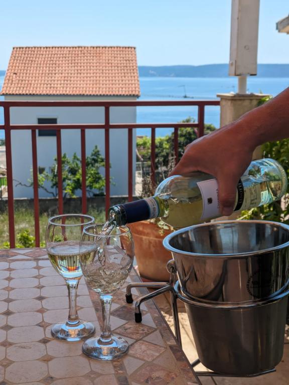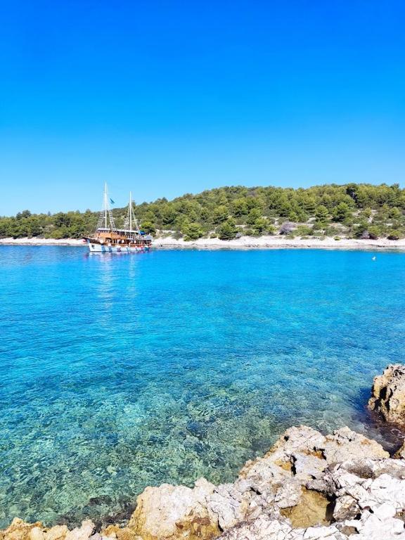 Dům se nachází na jižní straně ostrova Čiovo (4 km od Trogiru), v klidné ulici, s vlastním parkovištěm ve dvoře. Apartmány jsou moderní a vybavené a mají výhled na moře.