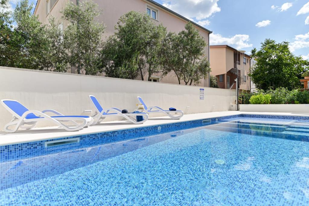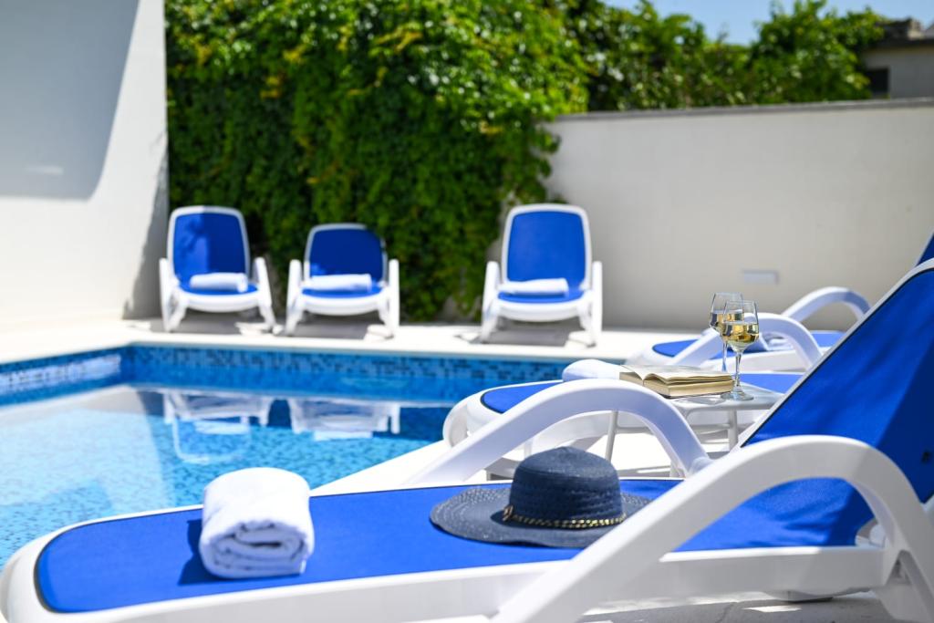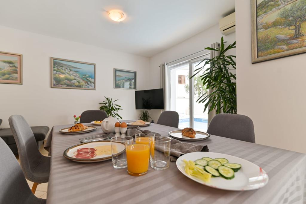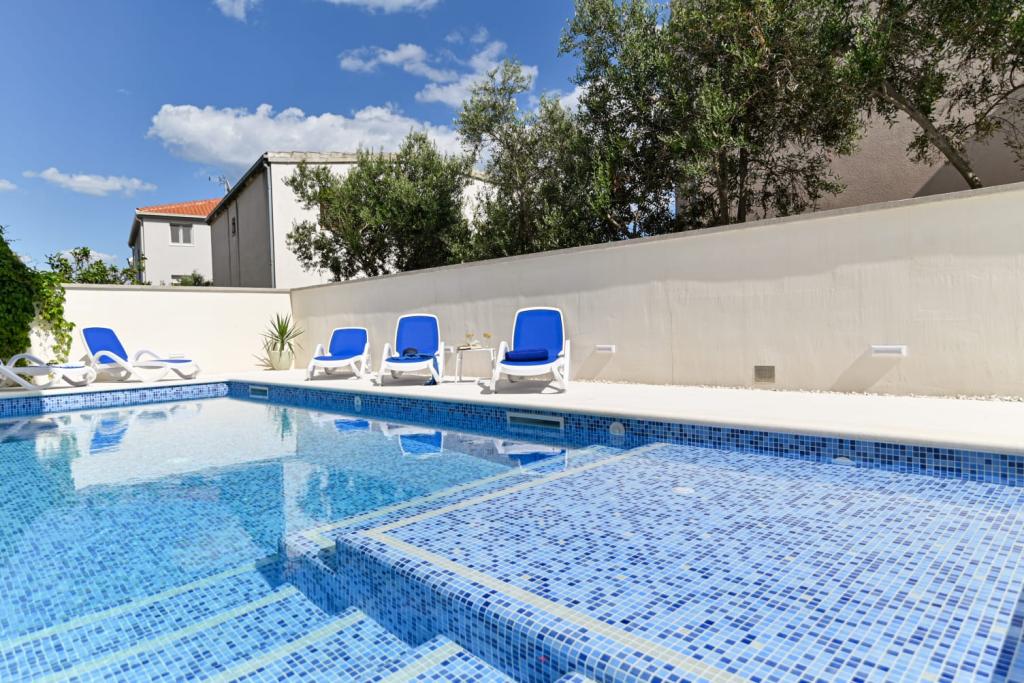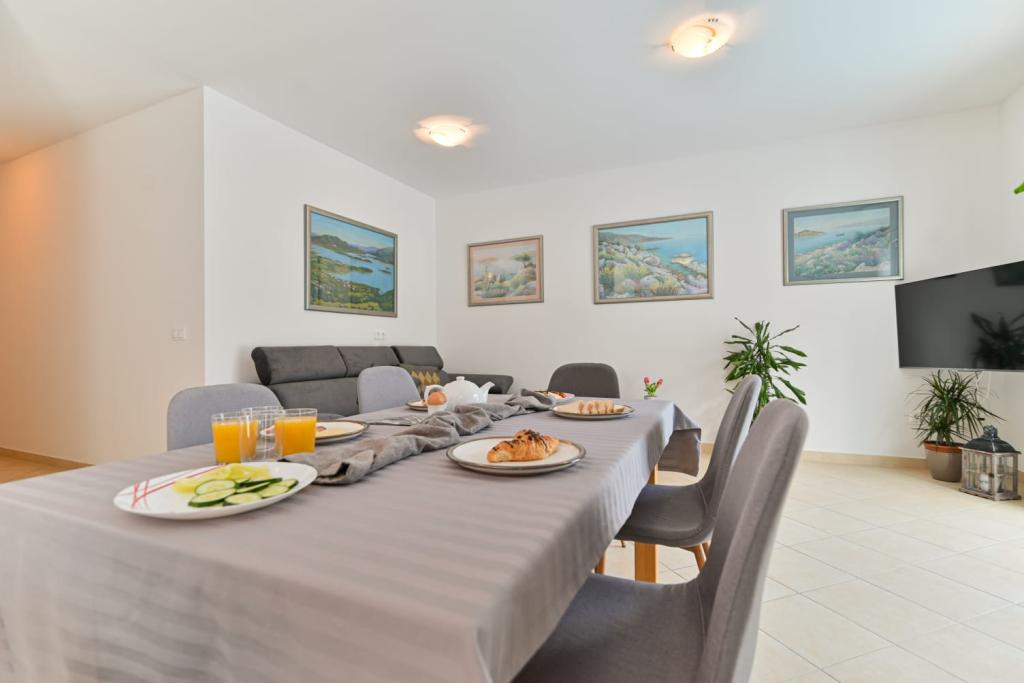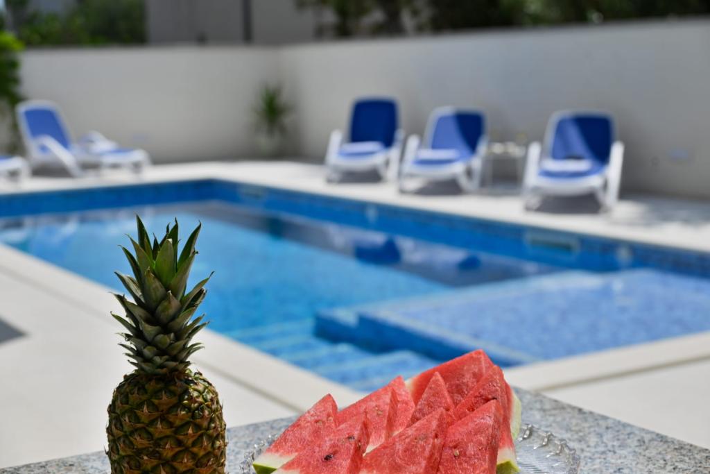 Na jižní straně ostrova Čiovo, který je spojen dvěma mosty se starým a historickým městem Trogir a pevninou, 200 m od křišťálově čistého moře a pláže, vám nabízíme plně vybavený apartmán s vlastním bazénem . Apartmán se dvěma ložnicemi se nachází v přízemí, před kterým je soukromý bazén a gril. Parkování je zajištěno uvnitř budovy.