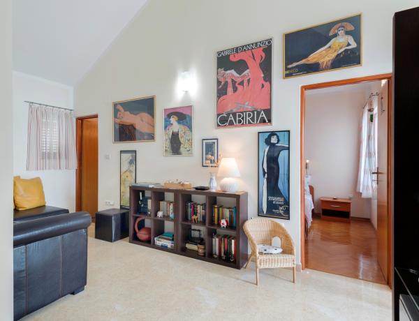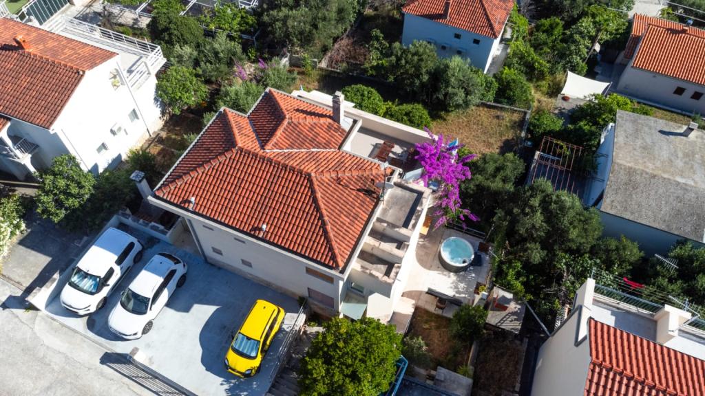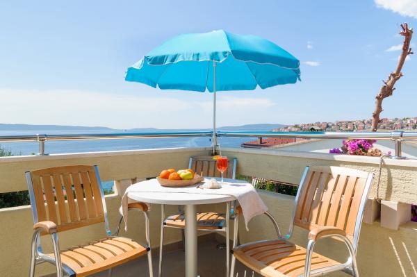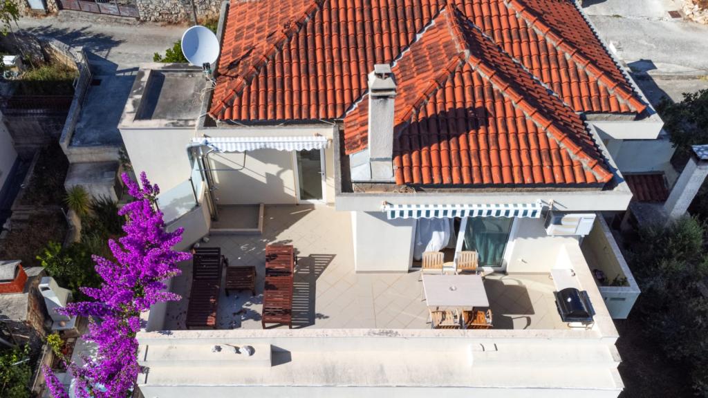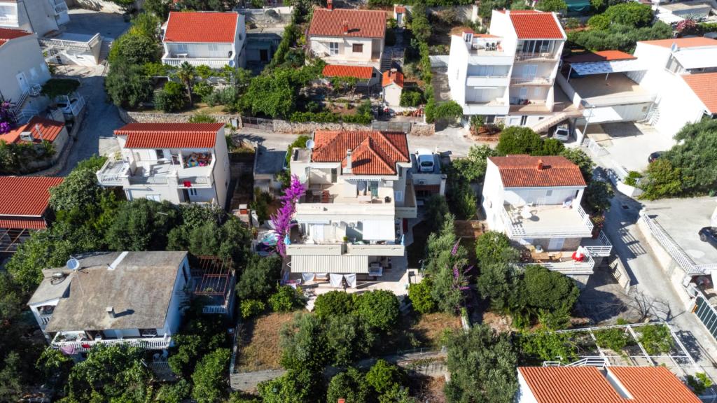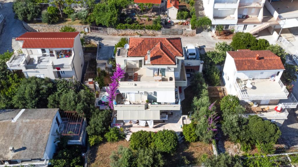 V bezprostřední blízkosti moře a borového lesa, na jižní straně ostrova Čiovo, dva apartmány v prvním patře rodinného domu, s výhledem na ostrovy Brač, Hvar, Šolta, Drvenik a nekonečno. Oba byty jsou vzdušné, orientované na jih a východ (Levante) a západ (Ponente), vybavené kvalitními materiály a spotřebiči. Ložnice s podstatnými liniemi, s postelí o rozměru 160x200 cm, prvotřídní matrací a matrací vyplněnou paměťovou pěnou a samozřejmě dobře zvoleným povlečením vám zaručí pohodlí. Koupelna je vybavena tak, že vám zaručeně nic nebude chybět. Další relaxaci jistě pomůže útulný obývací pokoj se sedací soupravou (s možností rozkládací sedačky), televizí 40\\ a kuchyní, kde si můžete uložit své oblíbené recepty. Dobrou letní náladu vám jistě zaručí balkon na ranní kávu a večerní aperitiv, možnost využití společného grilu, zahradní stůl a venkovní sprcha. Jsme tu, jste od nás vzdáleni jen jedno kliknutí!