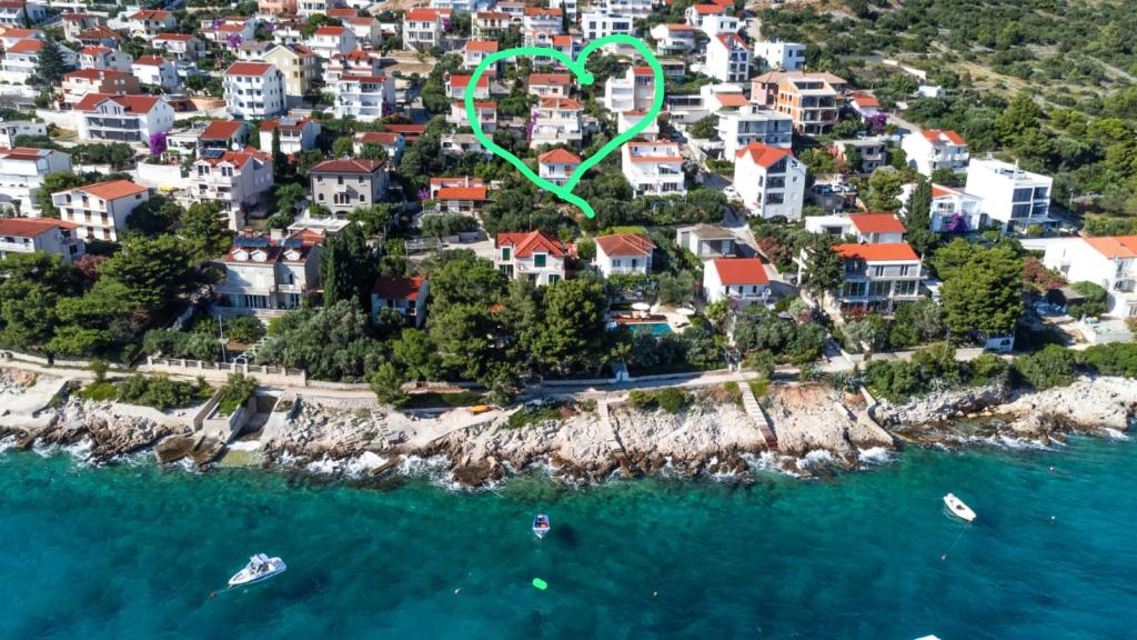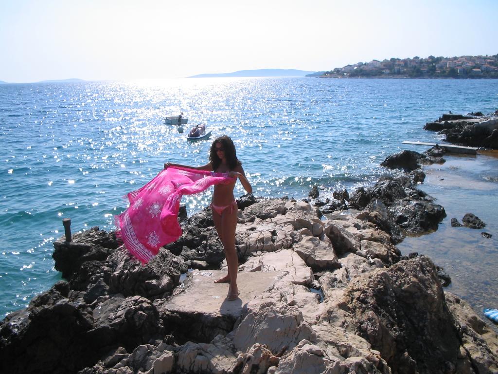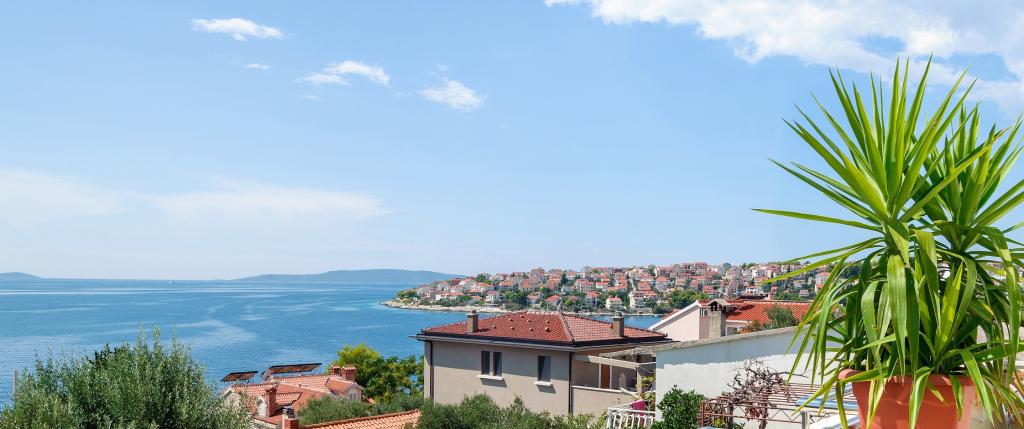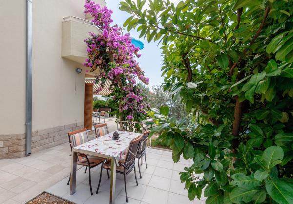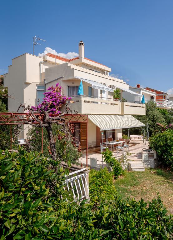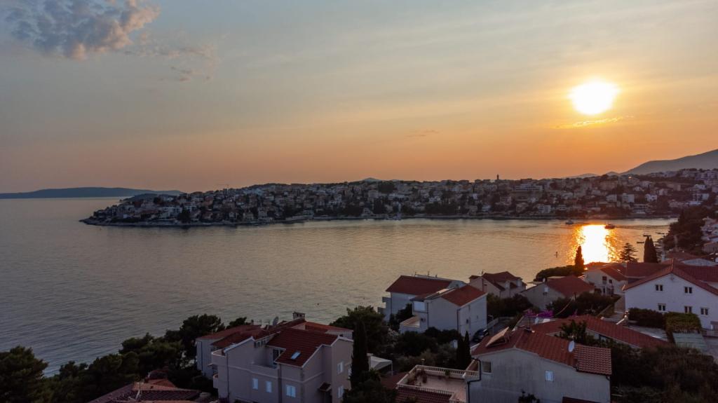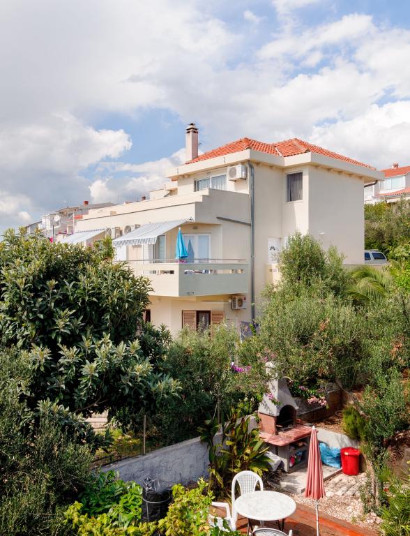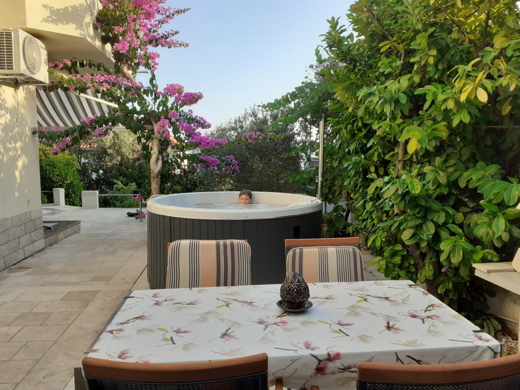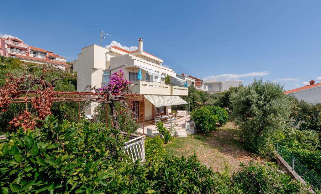 Zůstali jsme ve velkém bytě ve druhém patře, byli tam dva dospělí a dva teenageři, na týden v červnu. Všechno bylo perfektní: počasí, moře, dům, ale především naše nejdražší Nina, přátelská, milá, ochotná, vždy připravená pomoci, dát pokyny a návrhy, nabídnout drink. Byt je krásný, velmi čistý, pohodlný, vybavený vším, co potřebujete pro rodinnou dovolenou; opravdu jsme se cítili jako doma, ve skutečnosti mnohem lépe! Postele jsou velmi pohodlné a polštáře jsou úžasné! Tak dobře jsme spali a odpočívali!! Kuchyně je dobře vybavená, v koupelně je sprchový kout a také pračka a je moc pěkná, ale co se nám snad nejvíce líbilo, je velká terasa, kde se dalo najíst, dát si aperitiv, dokonce se i osprchovat při pohledu moře a ostrovy před námi nebo fantastický a nezapomenutelný západ slunce! Naplnili jsme naše oči neobyčejnou krásou! Kromě toho je všem hostům k dispozici jacuzzi vana na zahradě a také gril. Ninin otec, skvělý Leo, nám nabídl super mega dobrou večeři a super visnjevac (černý třešňový likér, který vyrábí). Moře je velmi blízko, první pláže jsou 100 metrů, dá se tam snadno dojít pěšky, moře NÁDHERNÉ, barvy zelená, modrá, tyrkysová, opojná vůně mořských borovic, zpěv neúnavných cikád. Lidí je málo (alespoň ne v červnu), takže relax totální! Pláže jsou kamenité (výborné pro potápění) a doporučuje se používat mořské boty (nebo i bílé oblázky - velmi blízká a známá pláž Vela Draga). Naprostou nutností je také návštěva Trogiru (5 km) a Splitu (25 km). Bylo to všechno tak krásné, že se nám nechtělo odcházet a rádi bychom se vrátili i příští rok. Děkuji, Nino, za všechno!