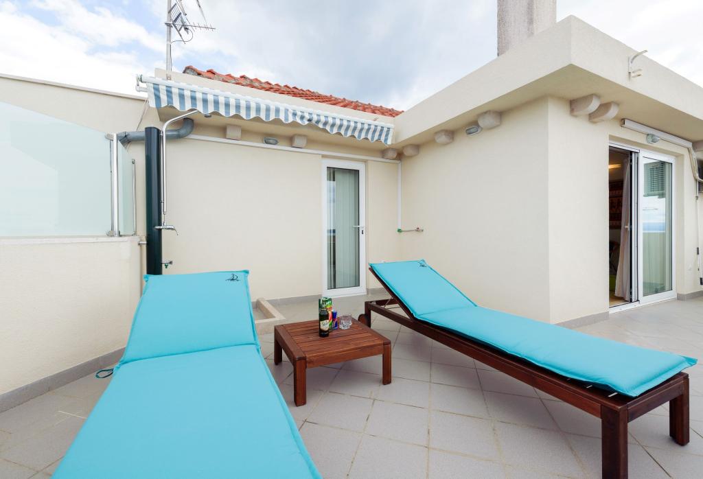 Velmi moderní a čistý byt s velkou střešní terasou a fantastickým výhledem na moře. Dalším vrcholem bylo použití vířivky a venkovní sprchy! Velmi klidné a nachází se přímo na pláži!