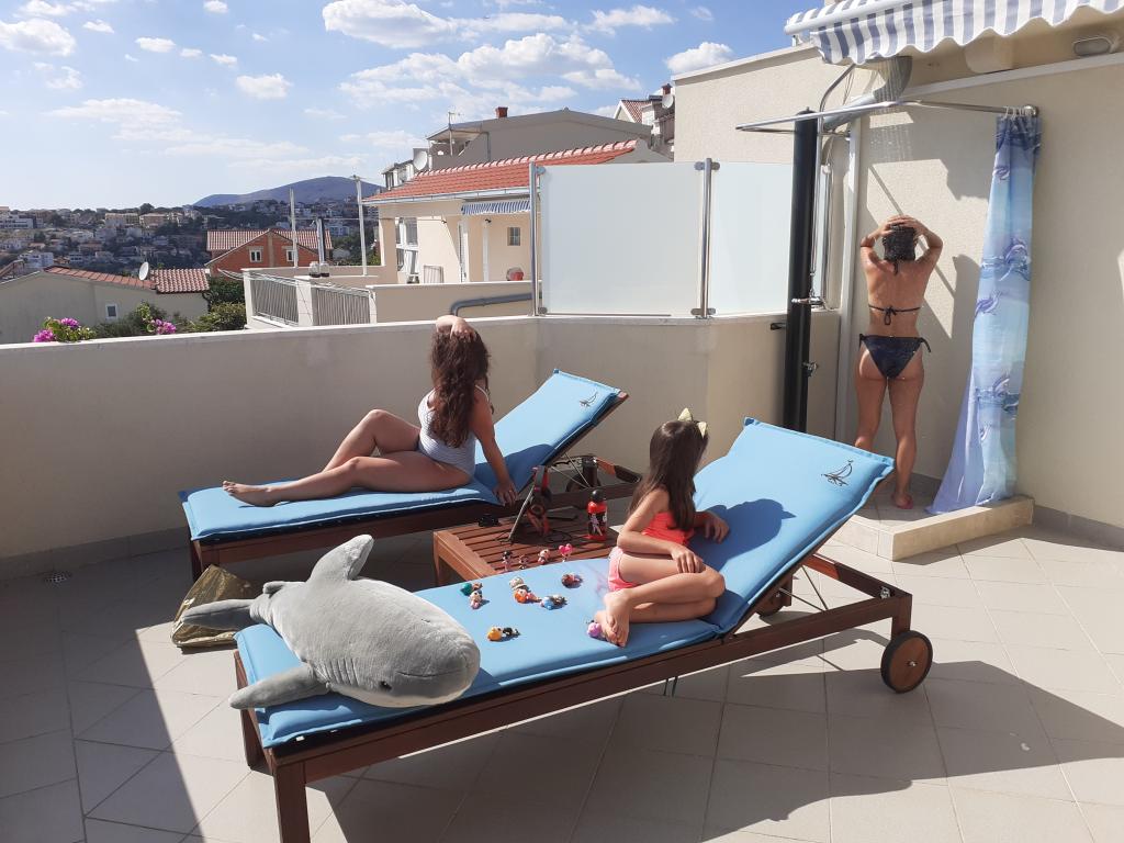 Velice vám děkujeme za nádhernou dovolenou, na kterou budeme vzpomínat, jste velmi pohostinní, milí, udělejte vše pro to, aby se váš host cítil opravdu skvěle. Byt je velký, krásný, čistý, pěkně zařízený. Pohled z terasy je nádherný! Je blízko pláže, pěkně zdobené. Čiovo je krásný, Trogir krásný; možnost výletů ... Pozdravy, Patricia s rodinou