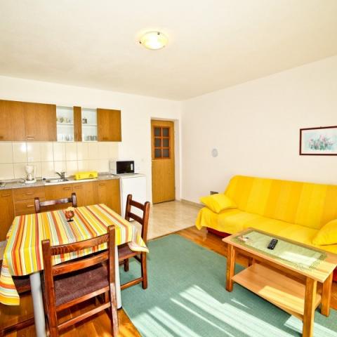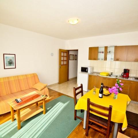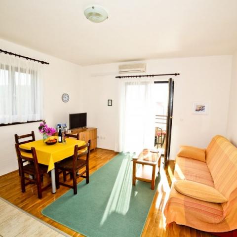 Apartmány Aniva nabízejí ubytování v rodinném domě v klidném prostředí se soukromou zahradou vhodnou pro děti. Nacházíme se 3, 5 km od Trogiru na ostrově Čiovo, který je spojen mostem s pevninou, v Okrug Gornji, v zálivu Mavarštica, kde se nacházejí nejbližší oblázkové a skalnaté pláže. Centrum města je vzdálené 500 m, kde jsou obchody, pošta, bankomat, lékárna, lékař a restaurace. Potápěčský klub je vzdálený 200 m. Saldunský záliv je vzdálen 700 m, s velkou písečnou pláží, promenádou, restauracemi a kavárnami a od zálivu každý den lodí do centra Trogiru. Apartmány A1 a A2 jsou v prvním patře s terasou o rozloze 12 m2 a apartmány A3 a A4 jsou ve druhém patře a balkony o rozloze 6 m2. Každý apartmán je maximálně pro 4 osoby. Hosté mohou využít venkovní gril se stolem pro 8 - 10 osob. Domácí zvířata nejsou povolena. Na požádání nabízíme dětskou postýlku a pračku.