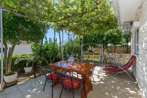 Plně zařízené, komfortní apartmány s nádherným výhledem na ostrovy Brač, Hvar, Šolta a Drvenik. Každý apartmán má terasu pro hosty vychutnat výhled na úžinu a lodí projíždějících tím, že vás opustí dech, a to jak v průběhu dne a noci. Apartmány jsou obklopeny krásnou zelenou zahradou s více než 22 druhů ovoce, takže hosté mají vlastní ráj. Pláž je jen pár minut chůze od domu. To je ideální pro dospělé a pro děti, protože má hlubší a mělčí část vchodu. Také, na pláži se nachází kavárna a prodejna tabáku se zmrzlinou, takže se můžete občerstvit ze silného slunce. Všechny naše parkovacích míst. Apartmány jsou kompletně zařízené, modernizována, a vždy usilovat o nové přírůstky, které jsme opevnit našim hostům pobyt.