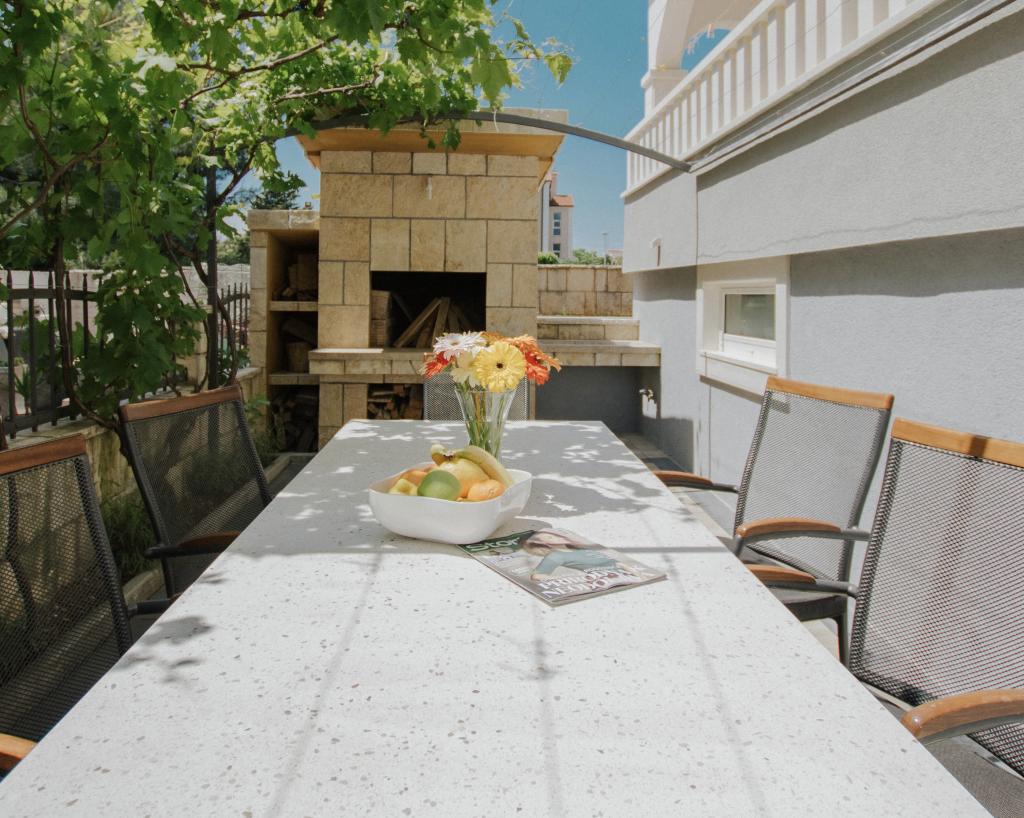 BLUE SEA HOUSE se nachází v Trogiru ve Splitsko-dalmatské župě, v blízkosti pláží Bočic a Mavarstica. Na místě je neplacené soukromé parkoviště. Klimatizované jednotky s výhledem do zahrady a na moře, dlážděné podlahy, vlastní koupelna, TV s plochou obrazovkou, bezplatné Wi-Fi, skříně, obývací pokoj, žehlička, pračka, vybavená kuchyň, lednice, rychlovarná konvice, mikrovlnná trouba. BLUE SEA HOUSE má také zahradu, gril a posilovnu. Pláž Copacabana je vzdálená 1,2 km a přístav Trogir 5 km. BLUE SEA HOUSE se nachází 11 km od nejbližšího letiště Split.