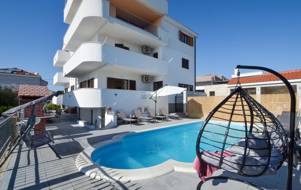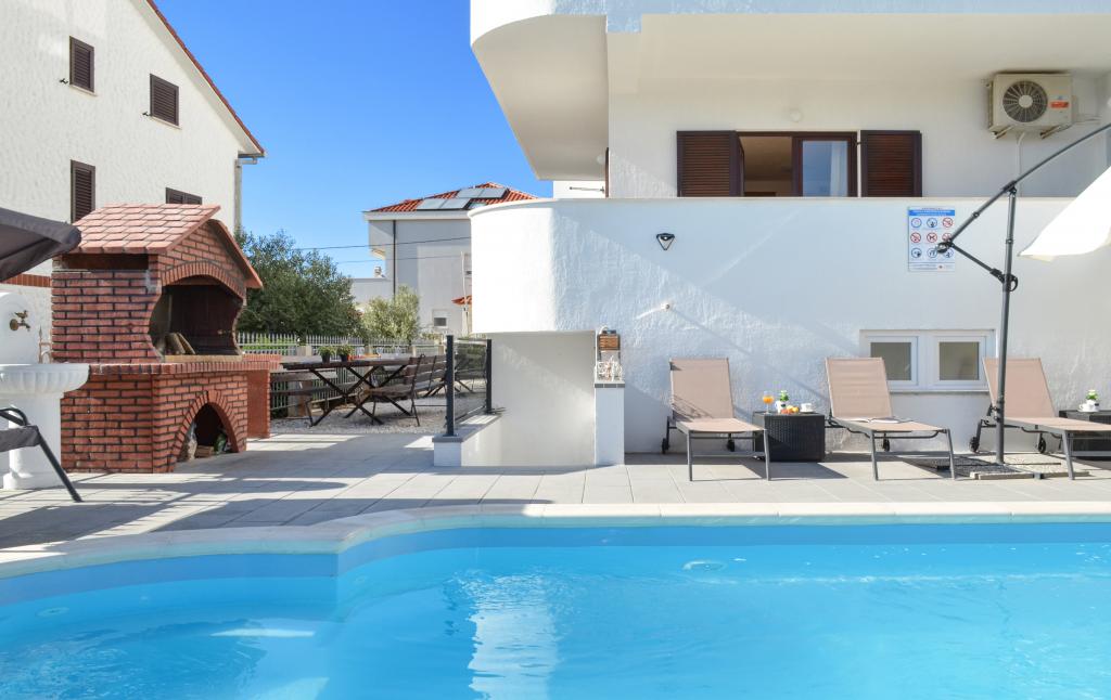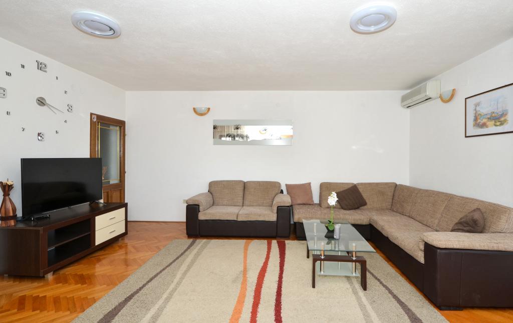 Apartmány D & D se nacházejí v Okrug Gornji v Čiovu. Prostorné a velké apartmány (200 metrů čtverečních): Velká kuchyň se všemi spotřebiči (myčka, kávovar, mikrovlnná trouba) a jídelna, obývací pokoj, tři ložnice, dvě toalety s pračkou, dva balkony, bazén, slunečník, lehátka, venkovní stůl, parkovací místo, wi-fi, klimatizace. Apartmány jsou určeny pro 10 osob. Pláž v Okrug Gornji - Okrugska Copacabana '' Zila kucavica 'Okrug, která se v letních měsících stává centrem života na Riviéře, je dvoukilometrová oblázková pláž Toc s promenádou. Je centrem všech denních i nočních akcí - během dne je naplněno zákazníky a v noci milovníky zábavy a gastronomie. Obchody, kavárny, restaurace, lékárna, bankomaty jsou jen 200 metrů od bytu. Pouze 5 minut autem vás dělí z okresu do města Trogir, které je především staletou památkou. Četné monografie města, jako je ta od Iva Babiće, nám ukazují, že znalci ji právem považují za městskou památku, protože v ní lze jasně rozeznat všechny minulé historické epochy. Pokud jste příznivci hodnotné architektury, měli byste věnovat velkou pozornost pro-class, nejmonumentálnějšímu románsko-gotickému dílu v Chorvatsku - hlavnímu portálu kostela sv. Lawrence v Trogiru, pojmenovaný po svém pánovi Radovanovi. Odborníci tvrdí, že tato práce má velký význam pro celé povodí Jaderského moře a lze ji srovnat s jakýmkoli evropským úspěchem té doby! Reliéf řeckého boha Kairose ze 4. století, který je uchováván v trogirském klášteře sv. Nikola, která se stala jakýmsi symbolem Trogiru - je bohem šťastného okamžiku, který musí být chycen chomáčem vlasů, a tak chytit šťastnou příležitost, jinak zmizí. Popadněte šťastnou chvíli a „skočte“ z Okrugu do Trogiru. Nechte svou vysněnou dovolenou v Okrug Gornji v apartmánech Damir 1 a Damir 2. Těšíme se na váš příjezd. Vaši hostitelé Dubravka