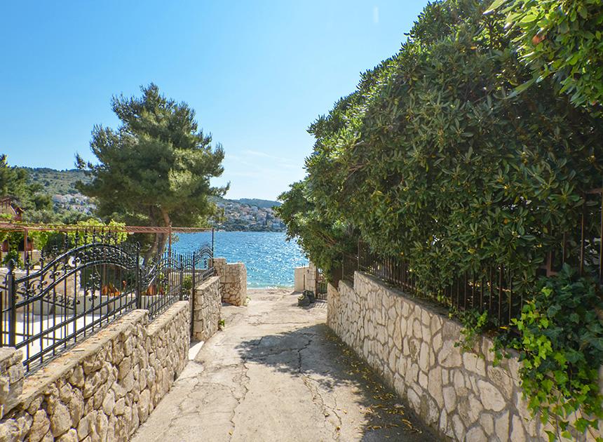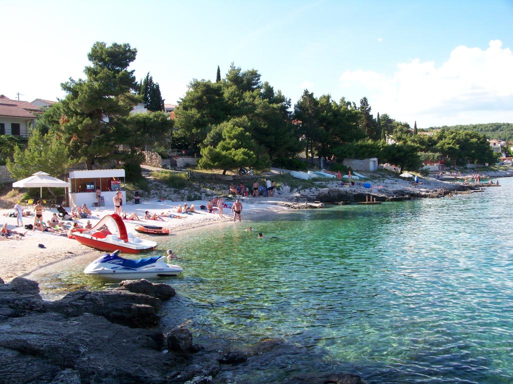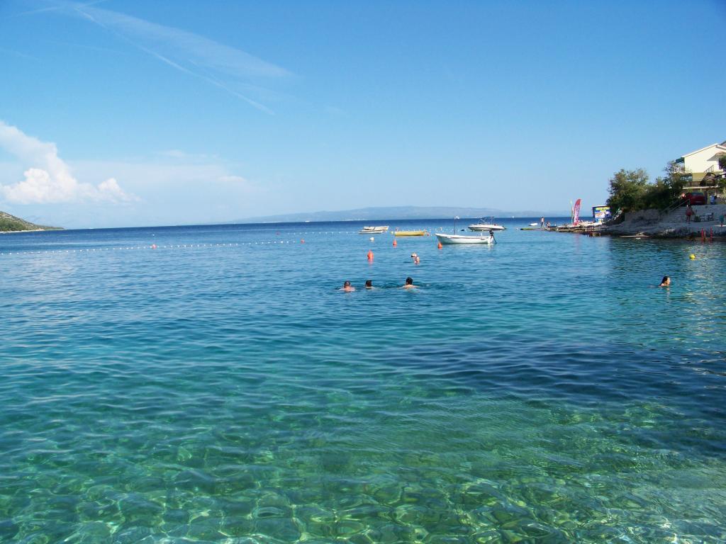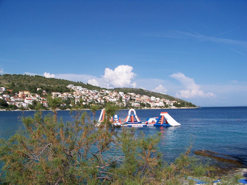 Čiovo, jižní strana, záliv Mavarštica, pronajmeme nové apartmány pro 3-4 osoby, SAT LED TV Samsung 32 (82 cm), DVD, Mikrovlnná trouba, Mixér, Klimatizace, Wi-Fi rychlý optický internet. Všechny apartmány mají vlastní parkovací místa ve stínu, gril a jsou jen 50 m od pláže (na obrázku), vhodné pro malé děti. Apartmány jsou 4 km od Trogiru, města památek pod ochranou UNESCO. Všechny apartmány mají velkou terasu s výhledem na moře a další balkon v ložnici. Nejbližší restaurace je vzdálena 70 m. Vzdálenost do aquaparku je 100 m. Vzdálenost do nejbližšího obchodu je pouhých 400 m. Nejbližší lékárna, bankomat, velký supermarket, tržnice a bankomat jsou 900 m. Zdarma je Vám k dispozici: zahradní houpačka, velká dětská dřevěná houpačka, doplňková zahradní sprcha, lavička u grilu, slunečník na terasu. Hosté mají na dvoře k dispozici stůl Sponeta na stolní tenis se sadou raket a elektronických šipek. Na Smart TV lze sledovat polské, německé, anglické, francouzské, španělské, italské... volně vysílané SAT programy a nainstalována je i aplikace GoNet TV (Lepša TV), která hostům umožňuje sledovat slovinské, české, slovenské, maďarské a ukrajinské programy.