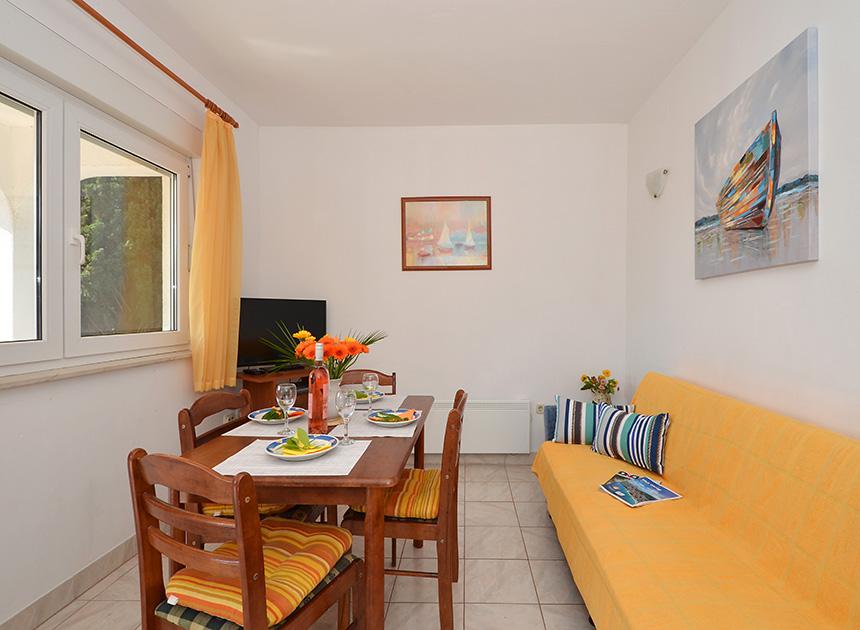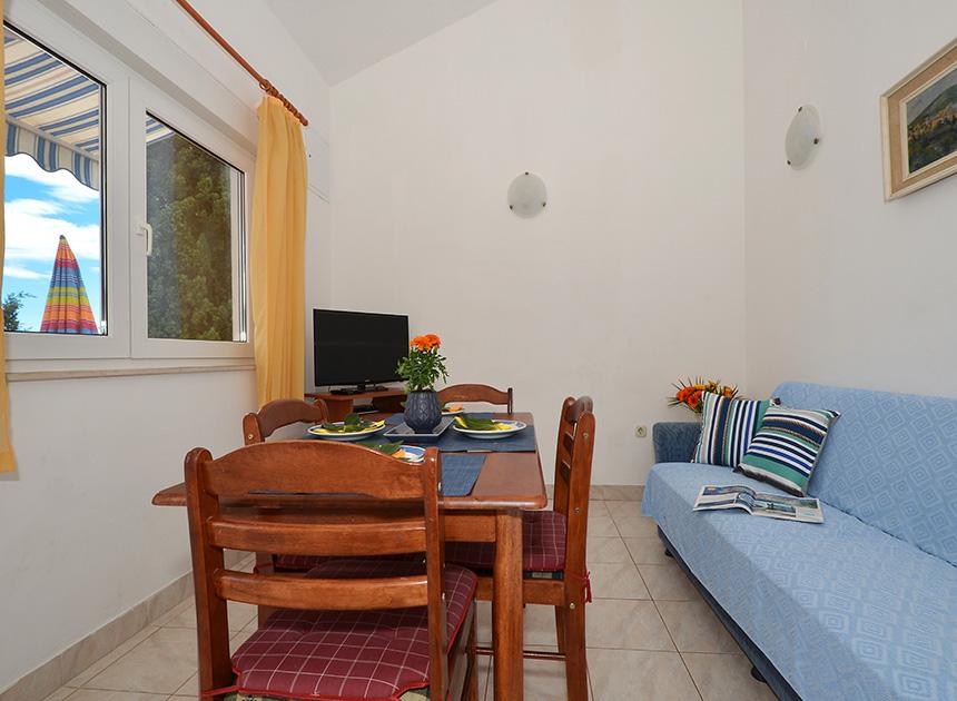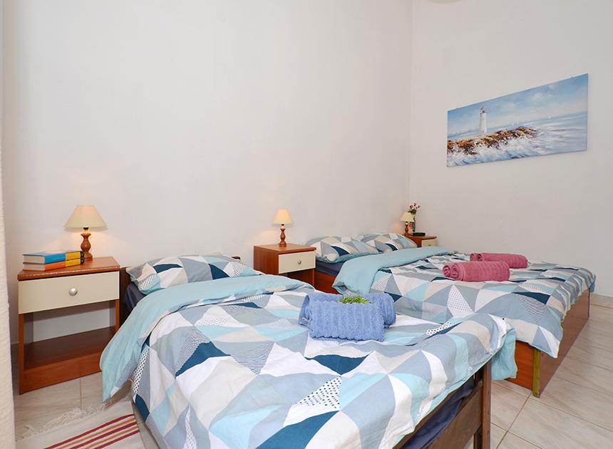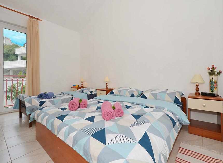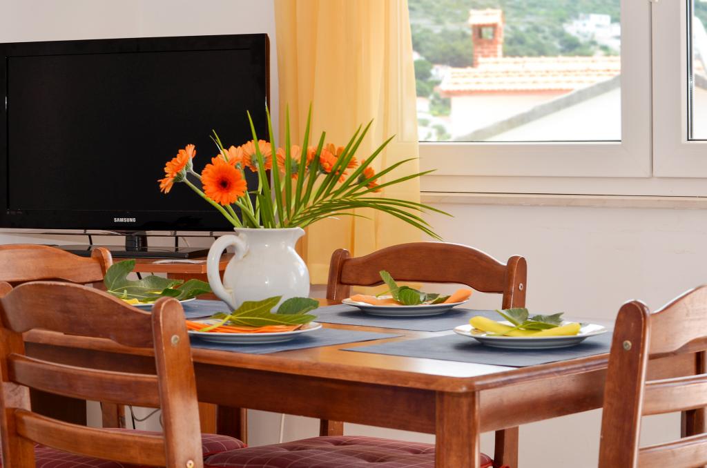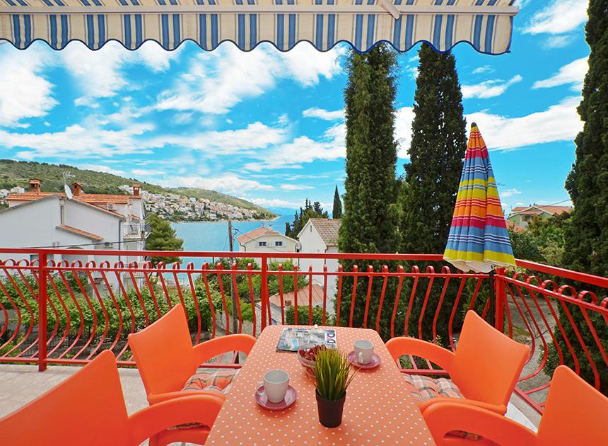 Čiovo, jižní strana, záliv Mavarštica, pronajmeme nové apartmány pro 3-4 osoby, SAT LED TV Samsung 32 (82 cm), DVD, Mikrovlnná trouba, Mixér, Klimatizace, Wi-Fi rychlý optický internet. Všechny apartmány mají vlastní parkovací místa ve stínu, gril a jsou jen 50 m od pláže (na obrázku), vhodné pro malé děti. Apartmány jsou 4 km od Trogiru, města památek pod ochranou UNESCO. Všechny apartmány mají velkou terasu s výhledem na moře a další balkon v ložnici. Nejbližší restaurace je vzdálena 70 m. Vzdálenost do aquaparku je 100 m. Vzdálenost do nejbližšího obchodu je pouhých 400 m. Nejbližší lékárna, bankomat, velký supermarket, tržnice a bankomat jsou 900 m. Zdarma je Vám k dispozici: zahradní houpačka, velká dětská dřevěná houpačka, doplňková zahradní sprcha, lavička u grilu, slunečník na terasu. Hosté mají na dvoře k dispozici stůl Sponeta na stolní tenis se sadou raket a elektronických šipek. Na Smart TV lze sledovat polské, německé, anglické, francouzské, španělské, italské... volně vysílané SAT programy a nainstalována je i aplikace GoNet TV (Lepša TV), která hostům umožňuje sledovat slovinské, české, slovenské, maďarské a ukrajinské programy.