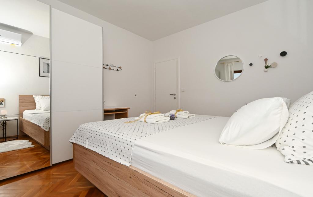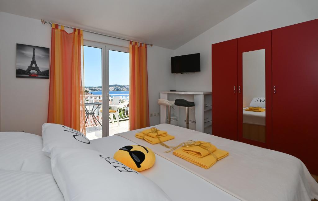 Villa Ljube se nachází v bezprostřední blízkosti autokempu Rožac, ve vzdálenosti 1,5 km od centra Trogiru. Celková kapacita vily Ljuba je 15 osob. Apartmány jsou vybaveny SAT TV a WLAN internetem. Hosté mohou využít gril v objektu. V prvním patře vily je velký apartmán s krásným výhledem na moře. Byt má prostorný balkon s výhledem na moře. Ve druhém patře se nachází byt moderního designu s prostornou terasou, která pojme 8 osob. Majitelé domu bydlí v přízemí a jsou vždy připraveni zodpovědět všechny dotazy a poskytnout pomoc. Balkon nabízí krásný výhled na moře a celý záliv. Villa Ljube je od pláže 150 m. Vila se nachází v klidné boční ulici bez přílišného hluku a dopravy.