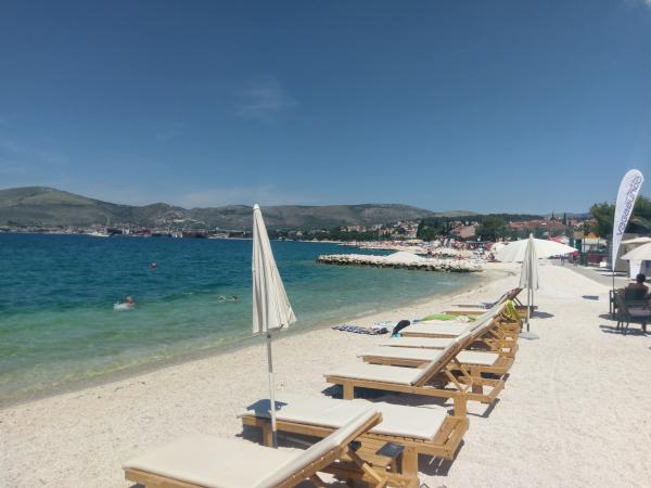 Apartmány Mare se nachází ve městě Okrug Gornji, jen 3 km od Trogiru a 30 km od Splitu. Pokud se rozhodnete strávit dovolenou v našem domě, můžete očekávat přátelskou a uvolněnou atmosféru, v klidném prostředí, s veškerou pomoc ze strany hostitele. Postavení našeho domu je mimořádně příznivá, pouhých 15 metrů od pláže, která nabízí různá zařízení barů, pronájmu skútry, čluny, skútry (motocykly), vodní lyžování, člun jízdy, padák. Méně než 300 metrů od našeho domu, můžete očekávat, restaurace, supermarkety, na přístav, ze kterého můžete borodm -taxi dosáhnout Trogir nábřeží každou půlhodinu, lékárna, tenisové kurty. Dům se nachází v kamenném domě dalmatského -KOMIN, kde si můžete udělat celou řadu pokrmů na grilu. Ve dvoře, nabízíme vám parkoviště.