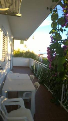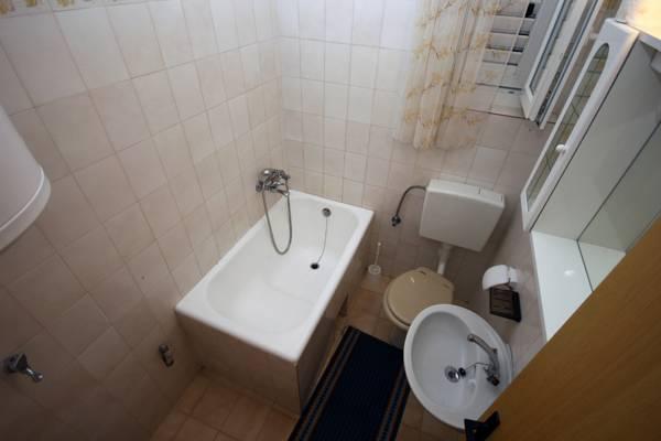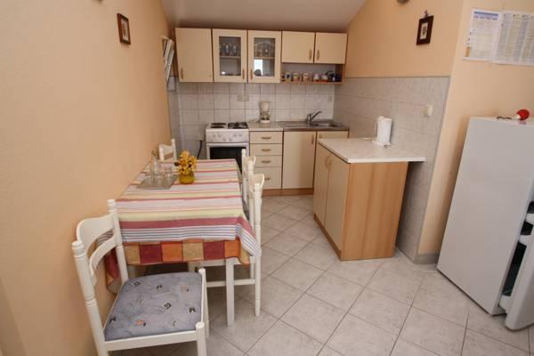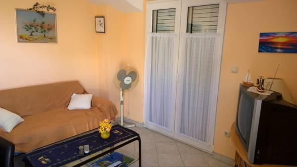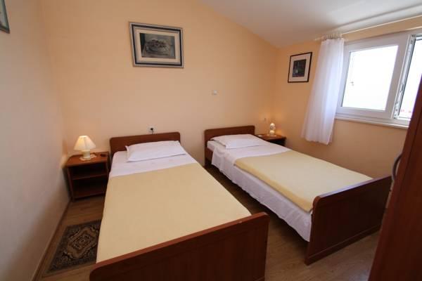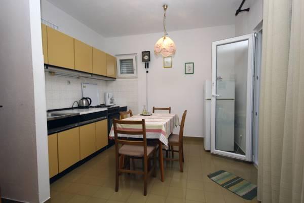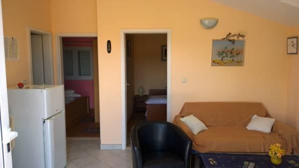 Třípokojový byt, který se nachází v 1. patře. Skládá se z obývacího pokoje s rozkládací pohovkou, ložnice s manželskou postelí a ložnice se dvěma samostatnými lůžky. K bytu patří koupelna s vanou a kuchyně s veškerým vybavením (trouba, 4 začal sporák, lednice, mrazák ..) po celé délce apartmány mají balkon se stolem a židlemi s výhledem na moře. Bezdrátové internetové připojení je zdarma.