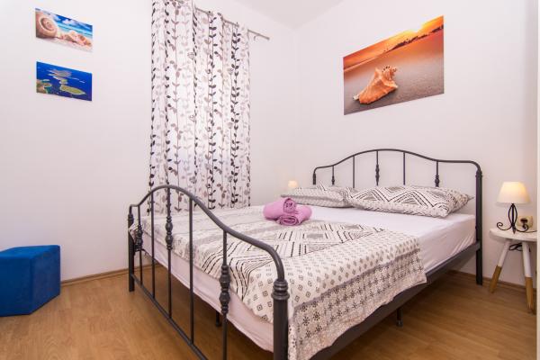 Plně a moderně vybavené apartmány v klidné části Okrug Gornji, 150 metrů od centra města. Apartmány obsahují vše, co byste mohli potřebovat a co by vám mělo zpříjemnit pobyt. Centrum samotného města - 5 minut chůze (v blízkosti pošty, trhu, obchodů, kaváren, restaurací, lékárny) a blízkost všech pláží činí náš objekt ještě zajímavějším a atraktivnějším. Klidné okolí objektu vám umožní zpříjemnit si pobyt a klidně si vychutnat ranní kávu na terase před apartmánem.
