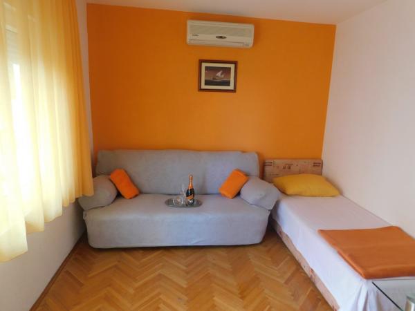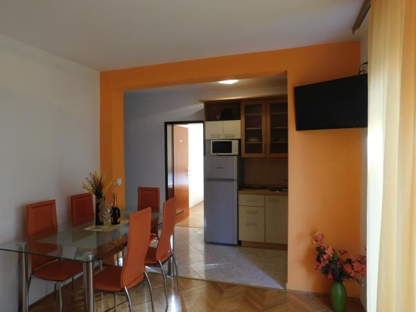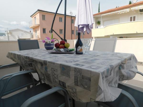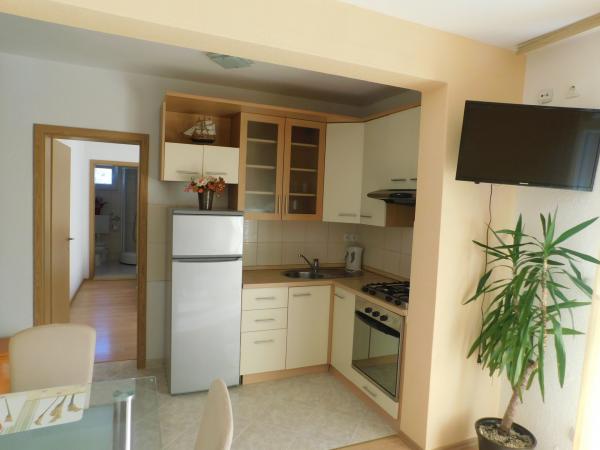 Apartmány se nacházejí v rodinném domě, 30m od pláže. Jsou moderně vybaveny a atmosféra, naplněné pohodlí a soukromí. Skládají se ze 4 nových bytů. Dům má velké parkoviště, a gril, který vám umožní vychutnat tradiční dalmatské speciality a autentickou atmosféru. Jen pár metrů od apartmánu je oblázková pláž, hřiště pro děti, stejně jako četné bary a restaurace.