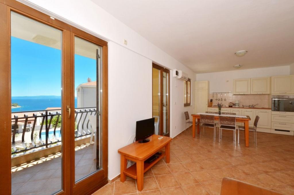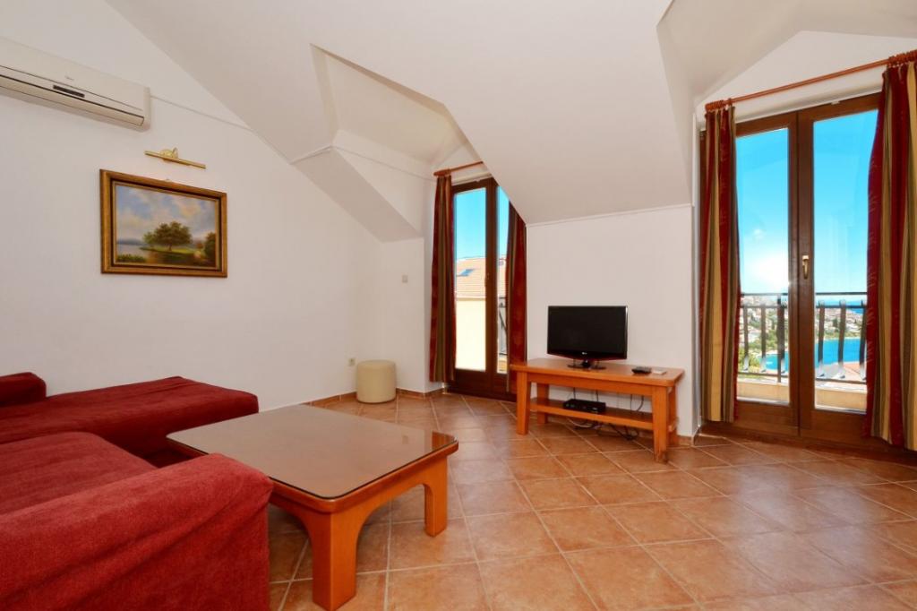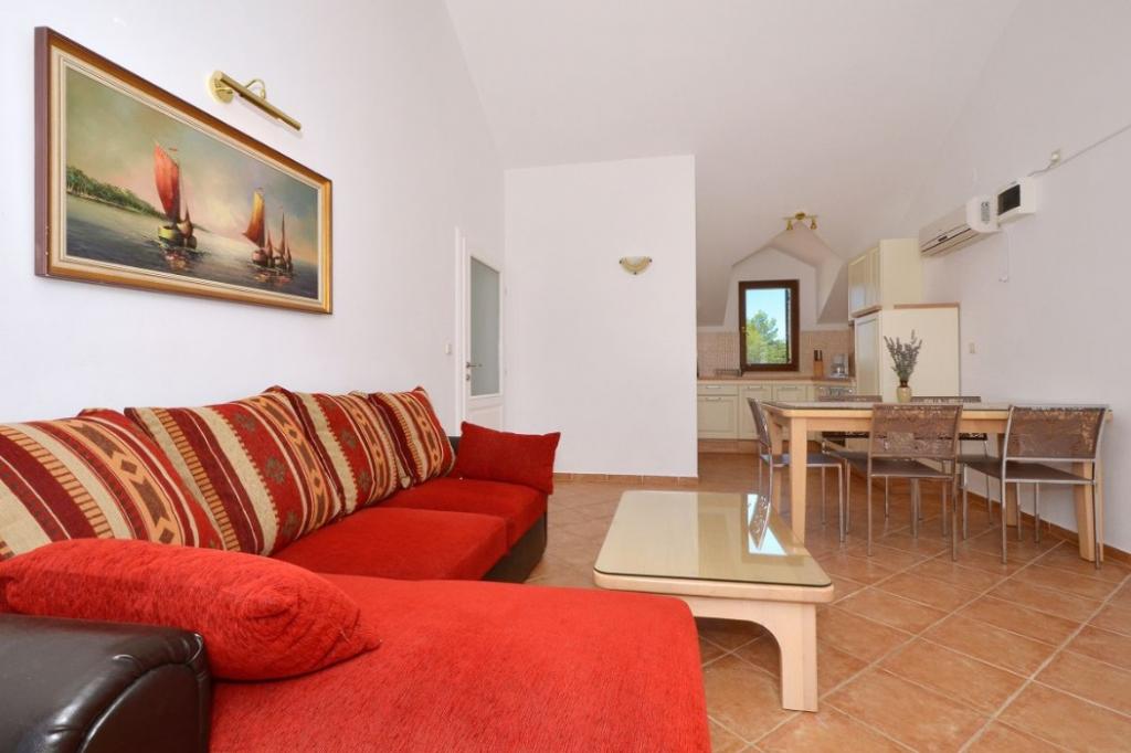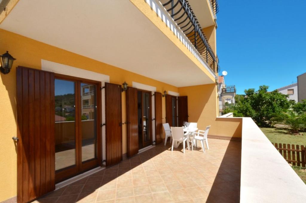 Plně vybavené apartmány NAVI se nacházejí na ostrově Čiovo, s výhledem na otevřené moře, a jen 200 metrů od první oblázkové pláže. Na pláži jsou restaurace a aquapark pro děti, kde si můžete také pronajmout šlapadla nebo surfy. Každý apartmán se skládá ze dvou ložnic, koupelny, spíž, kuchyně, obývacího pokoje a terasy. Apartmány jsou plně vybaveny vším, co potřebujete pro dovolenou. Byt B1, který se nachází v přízemí, má velkou terasu 29 m2 a přístup do zahrady. K dispozici je také parkoviště (1 parkovací místo na apartmán) a neomezený přístup k internetu. Jen 200 metrů od hotelu jsou restaurace a další stravovací zařízení, zatímco centrum, kde se nachází lékař, banka, pošta a trh, je jen 400 metrů od našeho ubytování.