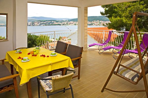Apartmány se nacházejí v Okrug Gornji, na adrese Planikovica VII / 3. Vlastnosti, které charakterizují prostor, kde se apartmány nacházejí, lze prezentovat jako: čisté moře, nedotčená příroda, ideální místo k pobytu pro rodiny s dětmi a přátele. Každý apartmán má ze svých balkonů a prostorných teras krásný výhled na moře a přírodu. Každý apartmán má vlastní parkoviště, klimatizaci a právo na neomezený internet zdarma. Vzdálenost od starého města Trogir je pouze 4,5 km. Nedaleko se nachází 2 km dlouhá pláž Copacabana. Kromě příjemného pobytu zde najdete různé zábavné aktivity pro všechny věkové kategorie. Na hlavní, již zmíněné pláži je velké množství barů, restaurací a obchodů. Pokud hledáte příjemný pobyt na klidném místě, v blízkosti moře se slunečními paprsky bez hluku aut, pak jste na správném místě Ap. 1 má 3 pokoje každý pokoj má koupelnu a balkon Ap. 2 má 3 pokoje se 2 koupelnami Ap 3 má 3 pokoje VÍTEJTE