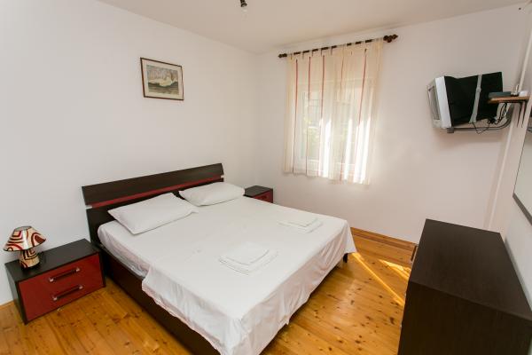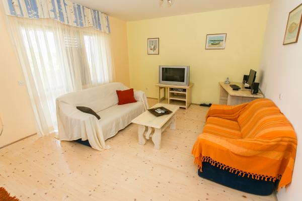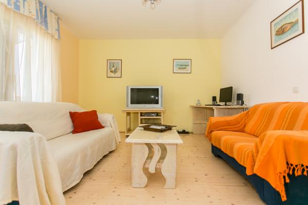 Byt je velký a prostorný (100 m2) a terasa (25m2) má krásný výhled na moře. K bytu náleží parkovací stání a okolí. Byt má vlastní zahradu, kde je roštilj.Atraktivna pláž s hodně je jen 2 minuty chůze. V bytě si můžete vychutnat a relaxovat, a pokud chcete, aby všechny své činnosti v blizini.Apartman se nachází v klidné čtvrti s místními obyvateli.
