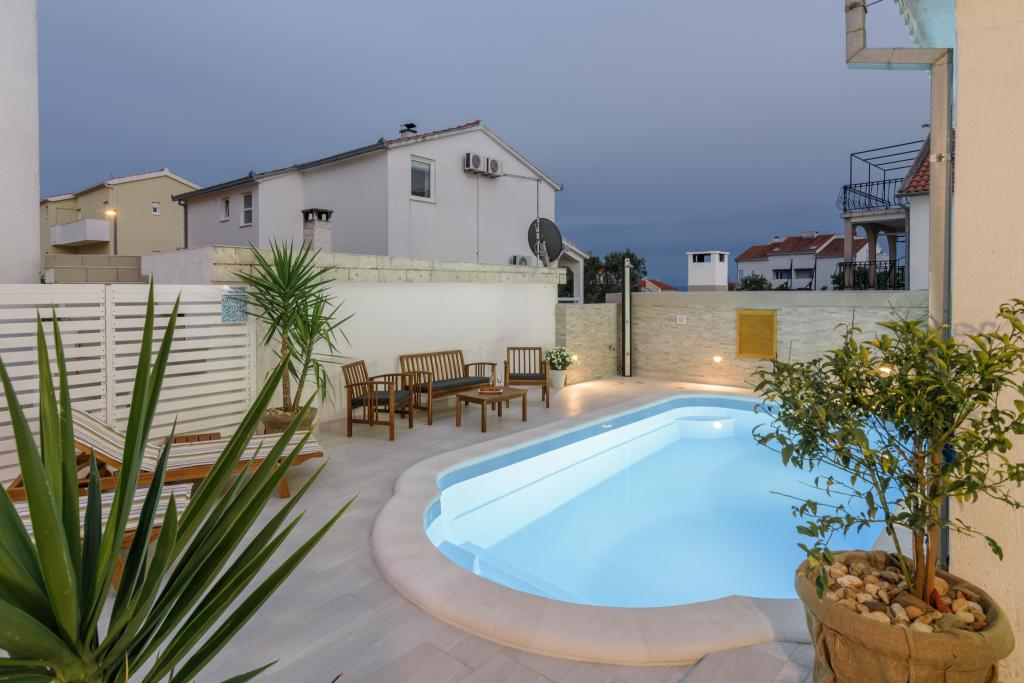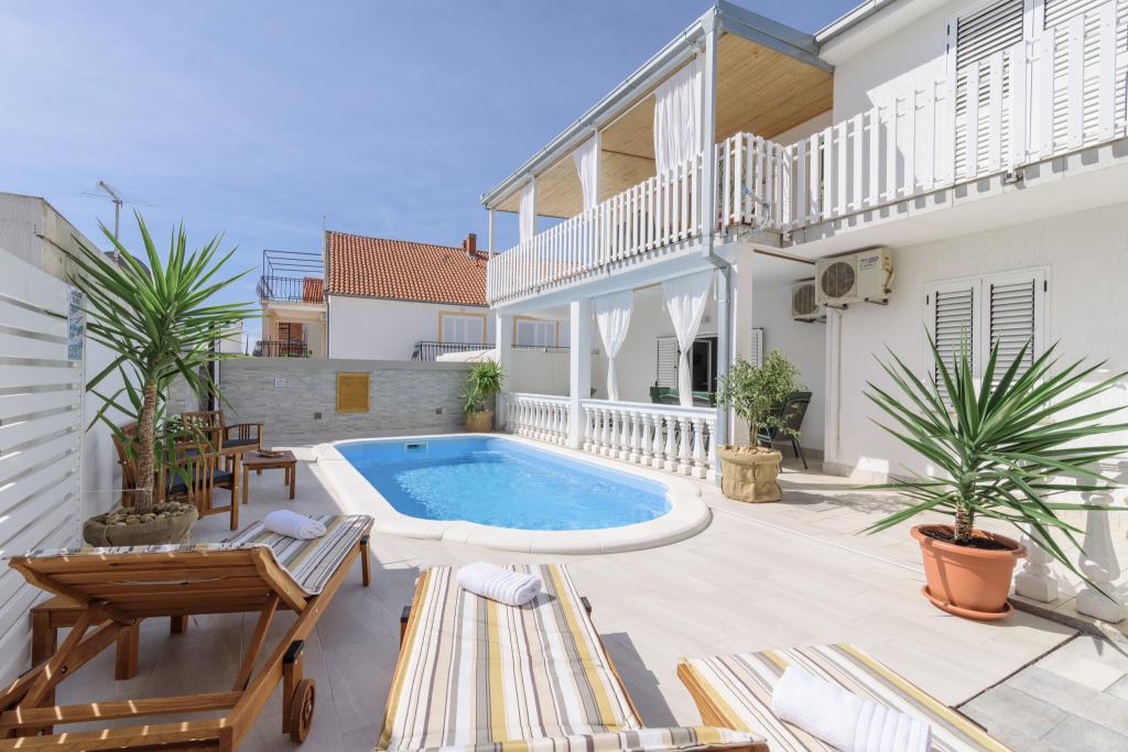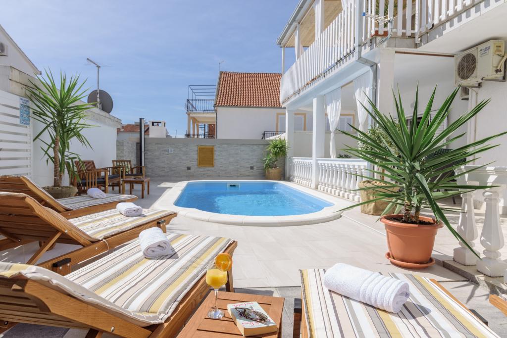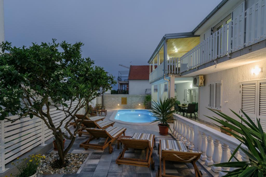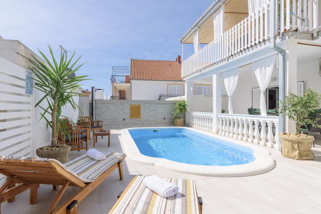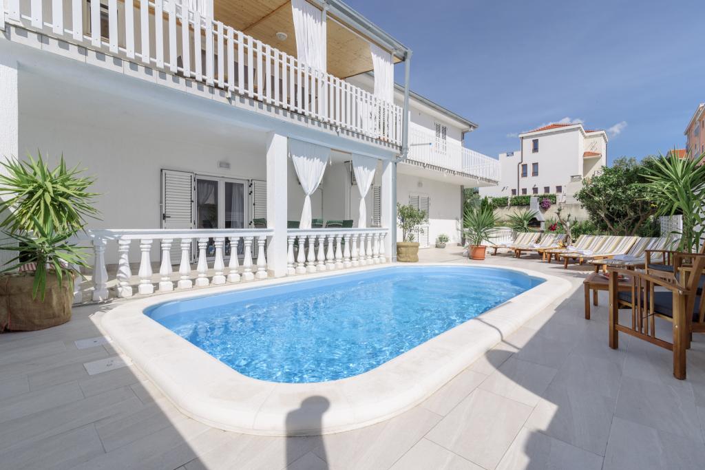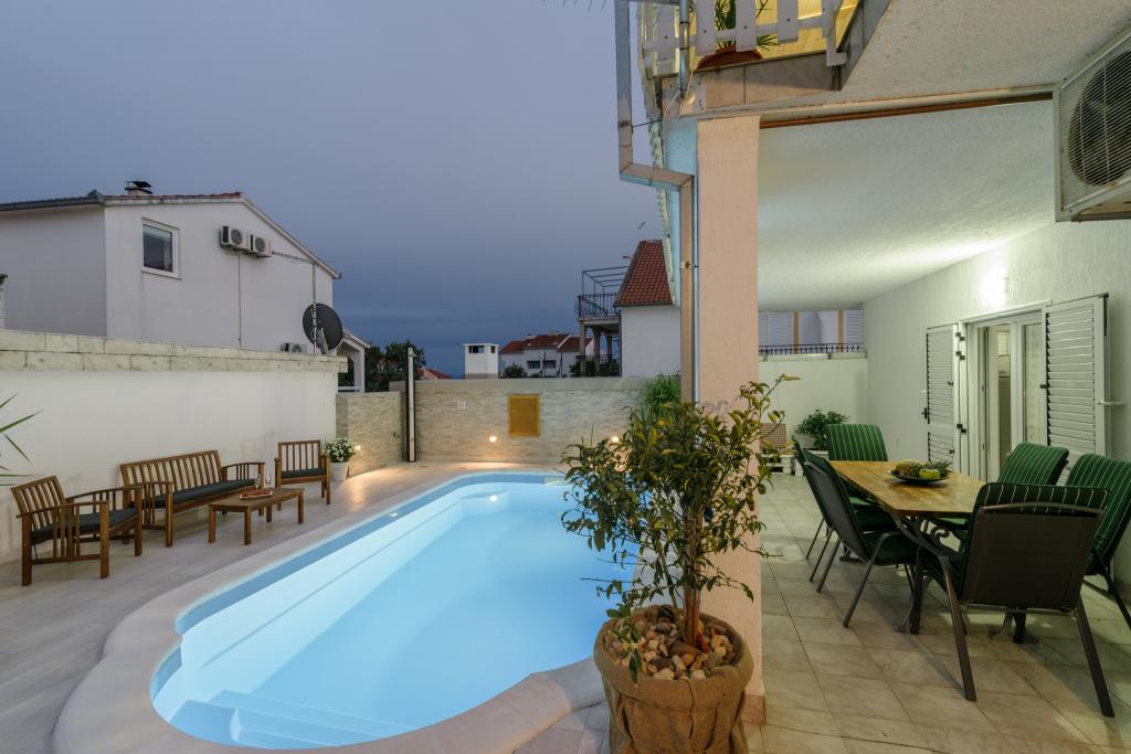 Jedná se o rodinný dům s bazénem, který se nachází v klidné části Okrug Gornji, v blízkosti pláže, restaurací a centra Okrug Gornji Nabízíme dva apartmány pro 4 a 6 osob s parkováním pro všechny hosty ID apartmánu: 26110 se nachází na první patro, sestává ze 3 ložnic, koupelny, obývacího pokoje, plně vybavené kuchyně a velké terasy s výhledem na moře, byt je vhodný pro dvě rodiny ID apartmánu: 26111 se nachází v přízemí, skládá se ze 2 ložnic, koupelny, obývacího pokoje pokoj, plně vybavená kuchyň a velká terasa u které je bazén s lehátky a grilem Apartmány jsou velké a pohodlné a mají velké terasy Všechny apartmány mají pračku V blízkosti apartmánu je minimarket, restaurace, sportovní centrum Možnost pronajmout celý dům!