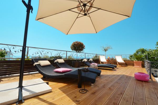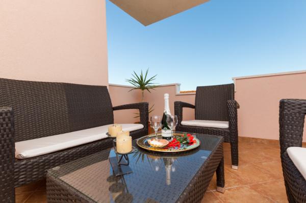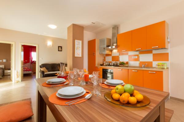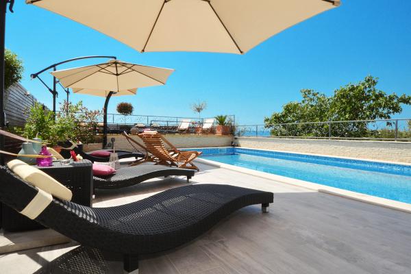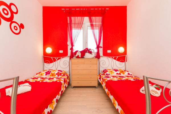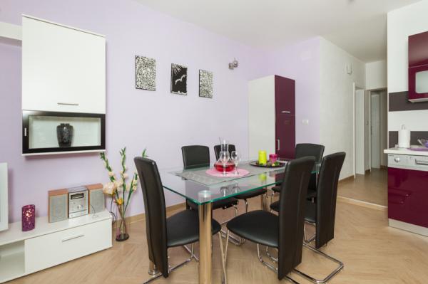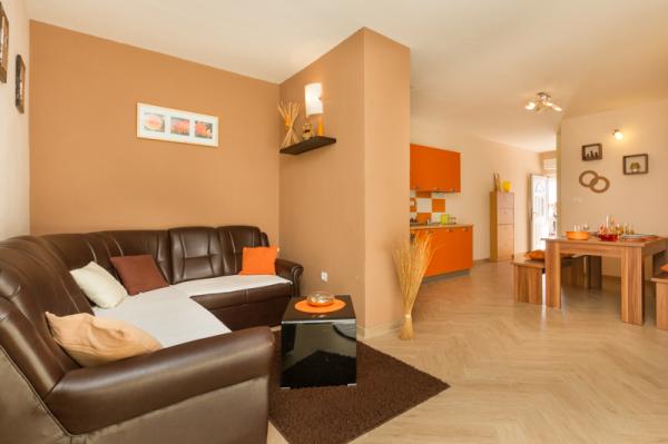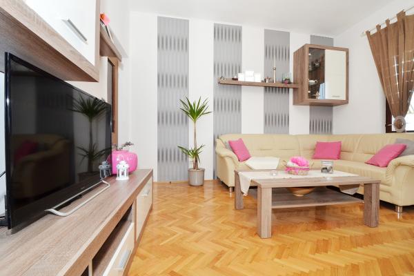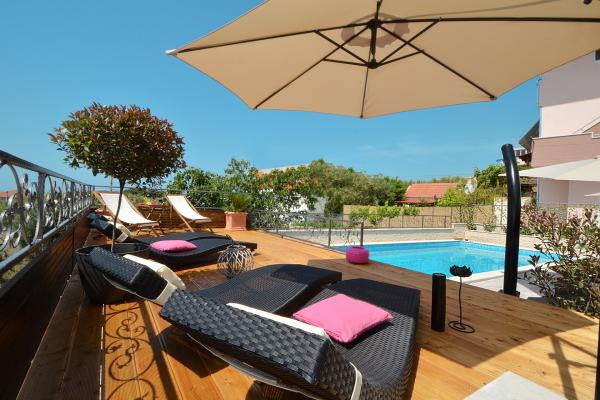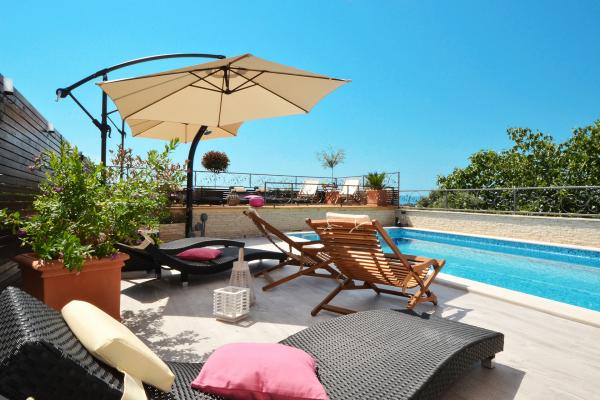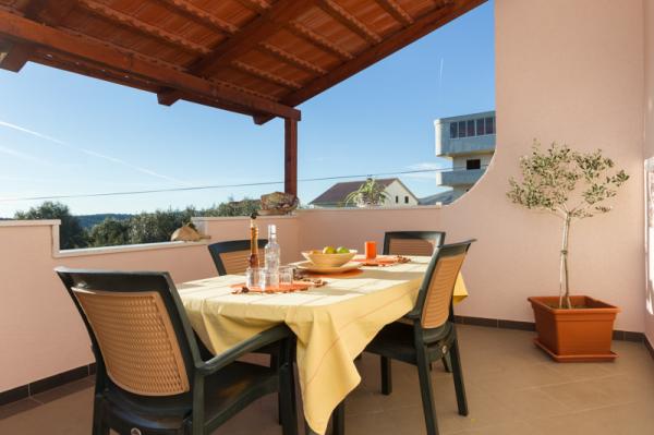 Apartmány Tomy se nacházejí v Okrug Gornji na ostrově Čiovo (spojené pevninou), pouhých 550 metrů od moře a 200 m od centra města. Hosté mají dva apartmány se třemi ložnicemi a jeden apartmán se dvěma ložnicemi. Před domem je velký hydromasážní bazén s rozlohou 35 m2 vybavený lehátky, houpačkami, stolem a židlemi a grilem.
