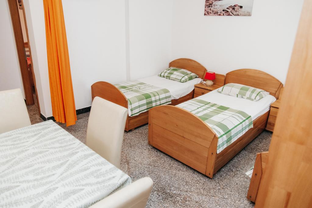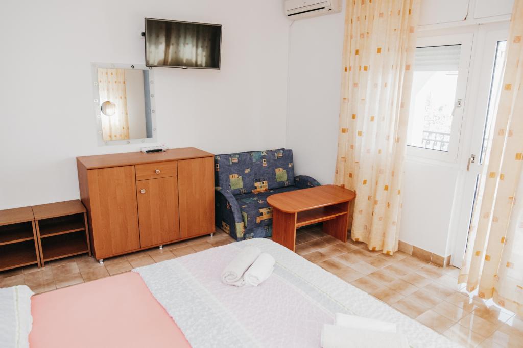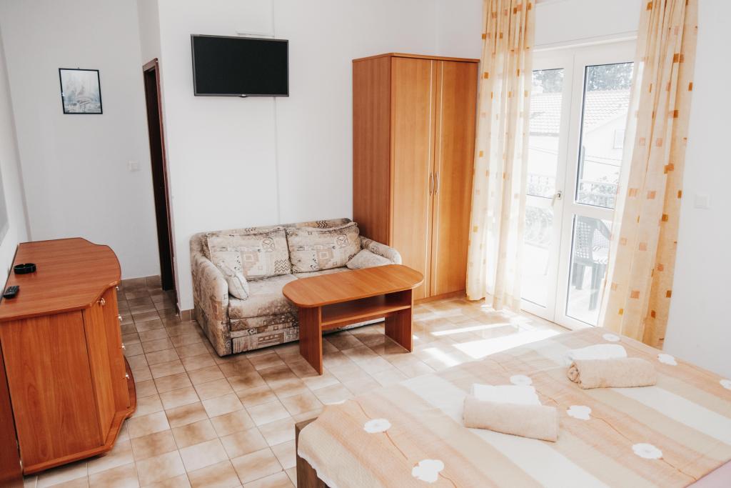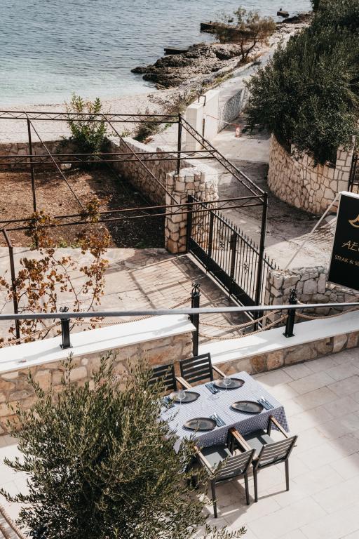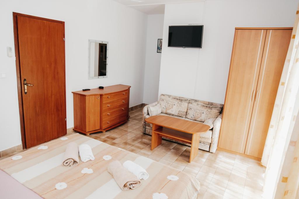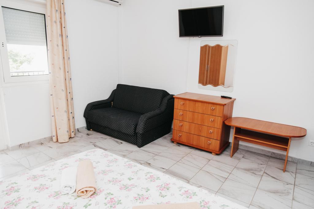 Vybavené apartmány a pokoje, které máme také v naší nabídce, v budově je naše restaurace s velkou terasou, vzdálenost od moře je deset metrů