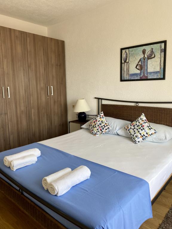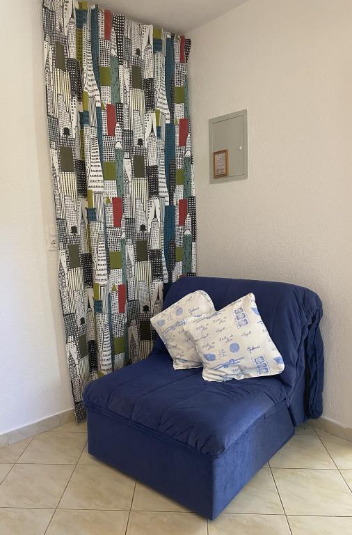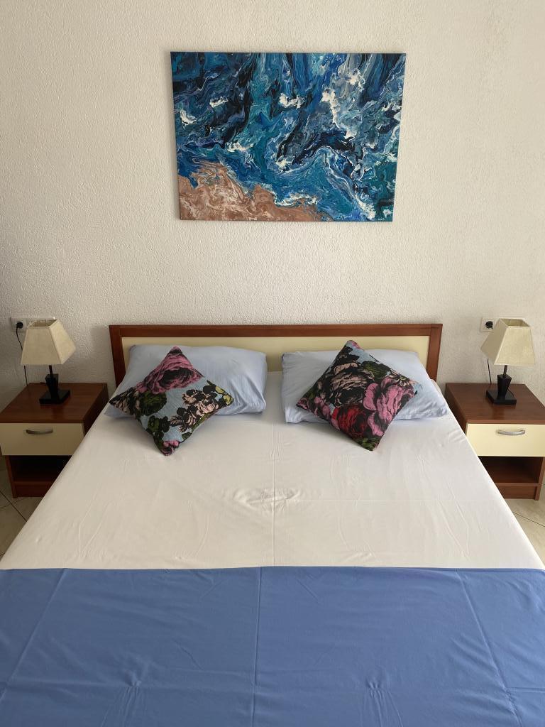 Útulný apartmán ve 3. patře s výhledem na moře z jednoho balkonu. Ideální se dvěma balkony, kde si můžete vybrat slunce/stín. Jeden je o něco větší a je ideální k posezení a jídlu. Dobrá kuchyň se vším, co potřebujete pro každodenní život. Klimatizace v kuchyni, dobré ventilátory v ložnicích. Dvě dobré ložnice s manželskými postelemi. Dobré parkování uvnitř bran a oblast je klidná a bezpečná. Velmi dobrý kontakt s pronajímatelem a rodinou. Byli nesmírně vstřícní a ochotní.