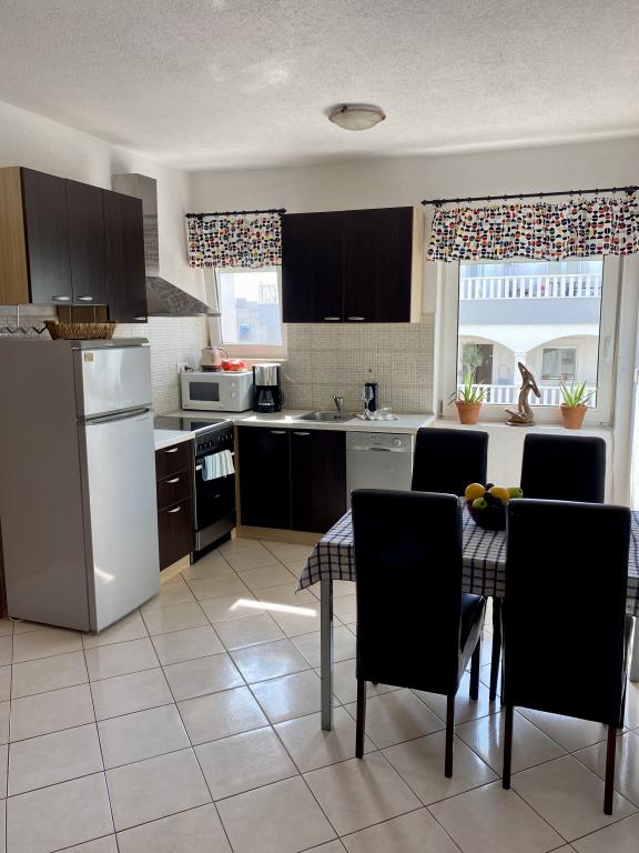 Pěkný byt s tím, co potřebujete. Skvělý výhled z balkonu a pěkná terasa na snídani a večeři. Je to klidná a pěkná oblast. Ideální pro nás jako čtyřčlennou rodinu, 2 děti ve věku 9 a 11 let. (Je to docela strmé dolů k oceánu (ten poblíž) a chodník je drsný, takže nedoporučuji kočárky nebo invalidní vozíky.) Snadný přístup, ať už jste chcete plavat z útesů se žebříky, moje dívky to preferovaly, nebo pokud chcete jít na pláž s oblázky. Voda je úžasná!! Tak jasné! Měli jsme 2 nádherné týdny a Darko a jeho rodiče jsou skvělí a tak nápomocní.