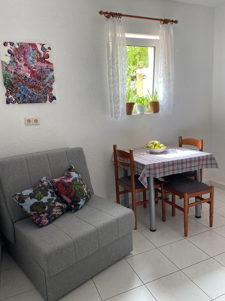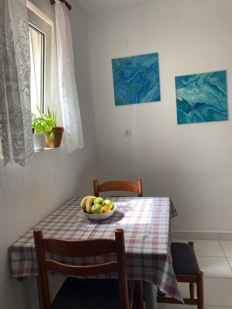 Velmi pohodlný byt vybavený různými pomůckami. Byt má velkou terasu s otevřeným výhledem na oblohu a druhý balkon skvělý pro ranní kávu a výhled na moře. Klidné prostředí, vhodné pro rodiny s dětmi. Výhodou jsou dvě kamenité pláže a pláž s oblázky. Toto je podruhé, co jsme zde zůstali a vrátíme se znovu.