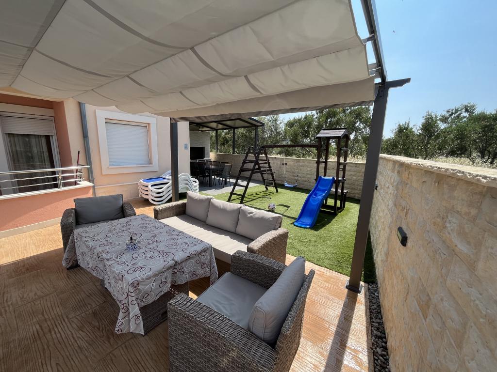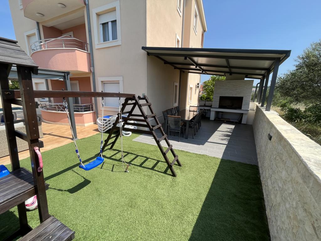 Moderně vybavené, klimatizované apartmány Villa Peky se nacházejí v rodinném domě na ostrově Čiovo v Okrug Gornji. Dva apartmány A2 2 a jeden apartmán 4 2 mohou pojmout až 14 osob. Před domem je parkoviště pro hosty. V zadní části domu je vyhřívaný bazén s jacuzzi, dětské hřiště a zastřešený venkovní gril s velkým stolem. Nejoblíbenější destinací v regionu Trogir je Okrug Gornji na ostrově Čiovo s krásnou pláží. Stará vesnice Okrug se nachází na vrcholu malého kopce, na jehož úpatí je rybářský přístav, asi 4 km od centra Trogiru nebo 8 km od letiště ve Splitu. Na pláži v Okrug Gornji si můžete pronajmout skútr, vodní skútr, můžete si užít parasailing a další aktivity na moři. Během léta si v Okrug můžete užít i stín kaváren nebo restaurací, které kromě jiných jídel nabízejí i dalmatské speciality. Potápěčská škola Trogir Diving Center v Mavarčici vás seznámí s krásami podmoří střední Dalmácie.