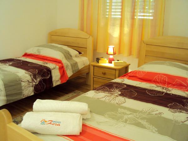 Apartmány Zora komfortně zařízené ubytování se nachází na slunné jižní straně poloostrova Čiovo, v klidné zátoce Movarštica, s polohou apartmánů, kde je celé souostroví jako na dlani. Z teras všech apartmánů si užijte výhled na souostroví Trogir, ostrovy Šolta, Drvenik...Trogir má dobré spojení se všemi velkými chorvatskými a evropskými městy letecky, po zemi nebo po moři. Letiště Split je vzdáleno pouhých 6 km, město Split 33 km a my jsme 4 km od centra Trogiru a pouze 250 m od moře, což je dalším důkazem naší dostupnosti a ideální polohy. Pokud máte zájem strávit svou dovolenou na klidném místě, jako je Okrug Gornji, a užívat si čistého moře, pokud máte rádi přírodu, jaká kdysi byla, vychutnejte si dalmatskou kuchyni, pokud máte rádi sport a rekreaci, Apartmány Zora jsou odpovědí na to všechno.!. Příjemný pobyt Vám přeje rodina Jelaska.