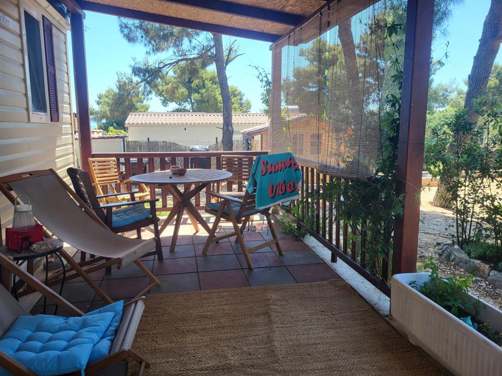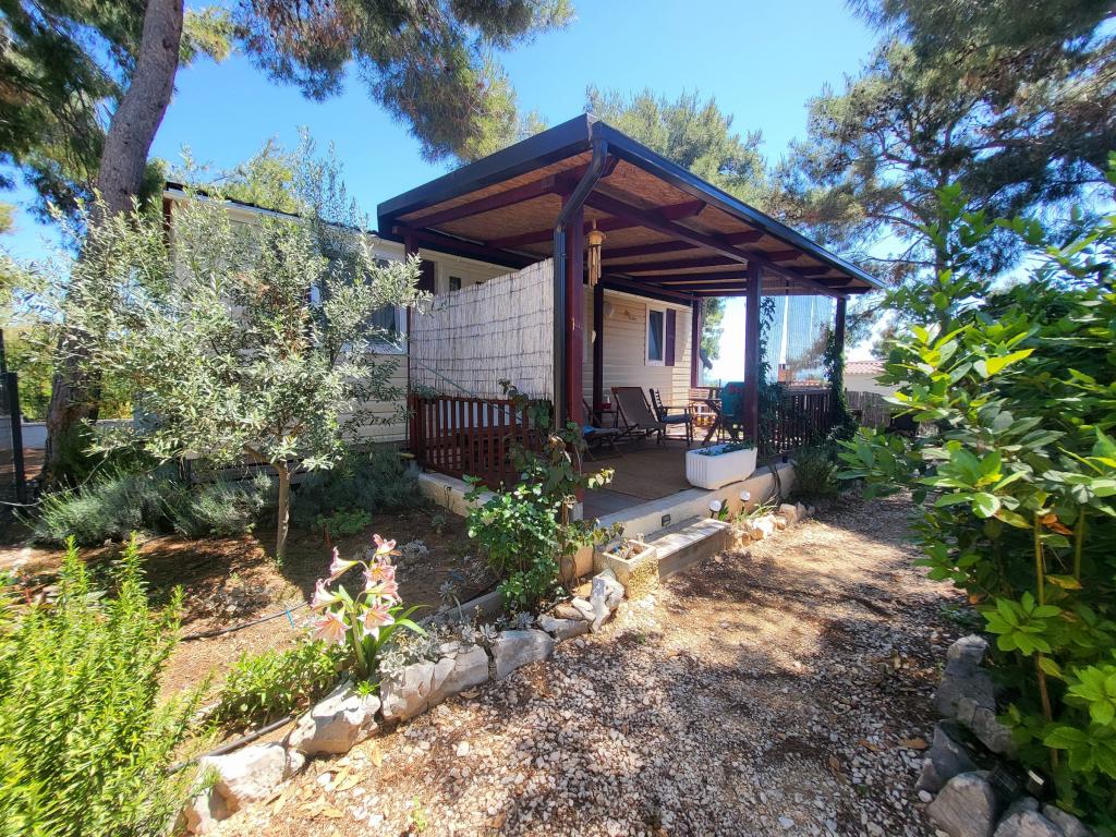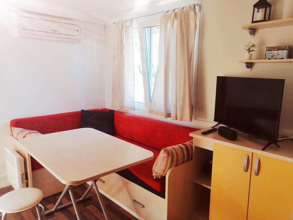 Plně vybavené 2 mobilní domy nacházející se na jižní části ostrova Čiovo. Chatky je možné pronajmout samostatně nebo společně. Ubytovací kapacita jednoho domu jsou 4 osoby. Dům má dvě ložnice. Jeden pokoj s manželskou postelí a jeden se dvěma samostatnými lůžky. Mobilní domy se nacházejí v blízkosti pláže Labadusa, kde je kemp a 3 restaurace a plážový klub. Pláž je vzdálená pouhé 3 minuty chůze, přičemž si můžete vybrat i odlehlé pláže nebo vlastní skálu, kde vás nikdo neuvidí. Mobilní domy jsou vybaveny veškerým vybavením nezbytným pro příjemný pobyt, kromě televize jsou k dispozici Netflix a HBO Max. K dispozici je také letní kuchyně, plynový gril a lehátka. Solární venkovní sprcha vám usnadní příchod z pláže. Parkování je také zdarma v rámci budovy.